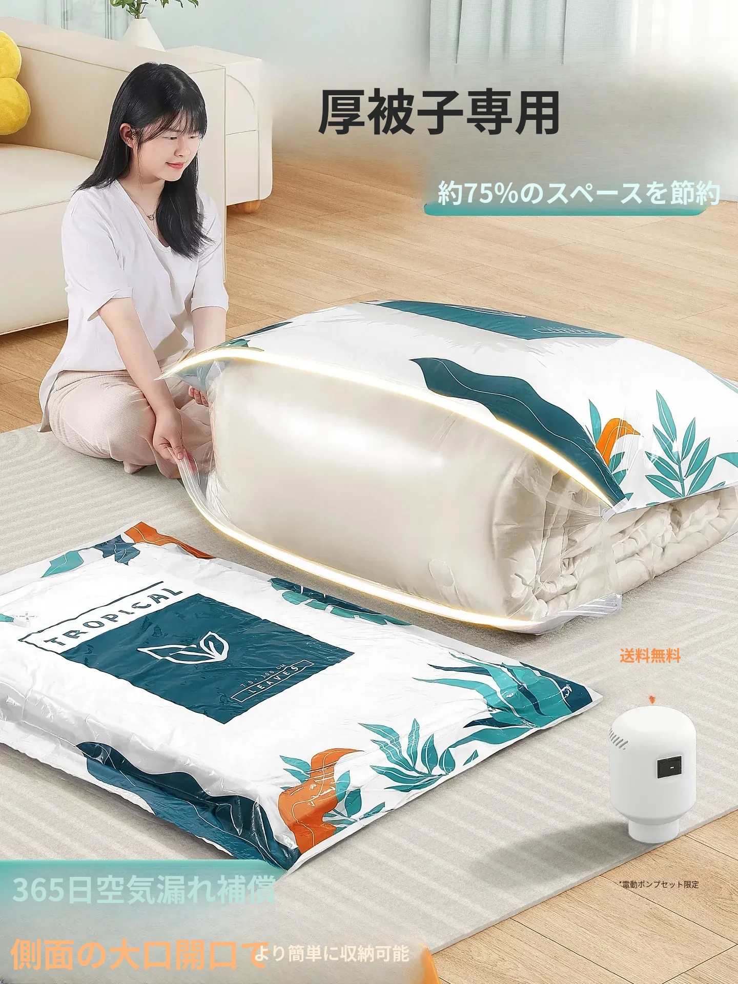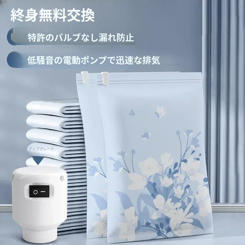 真空圧縮袋 衣類・布団用収納袋 家庭用電動ポンプ付き 空気を抜いてコンパクト収納!衣服・羽毛布団・ダウンジャケットに最適な特別設計!収納スペースを最大限に活用しましょう!