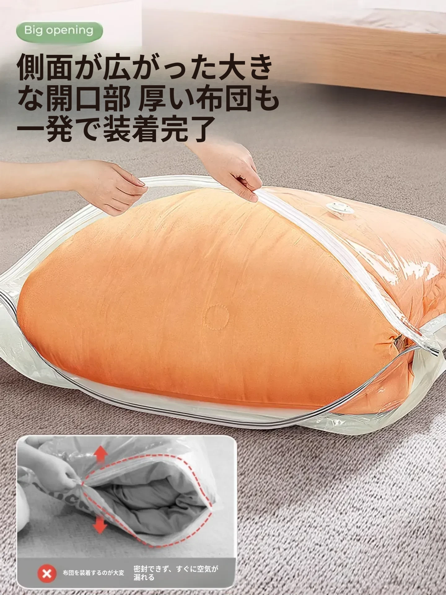 真空圧縮袋 ふとん専用 厚手タイプ 羽毛布団や衣類をすっきり収納!家庭用の便利アイテムで、スペースを最大限に活用して、衣替えもラクラク!