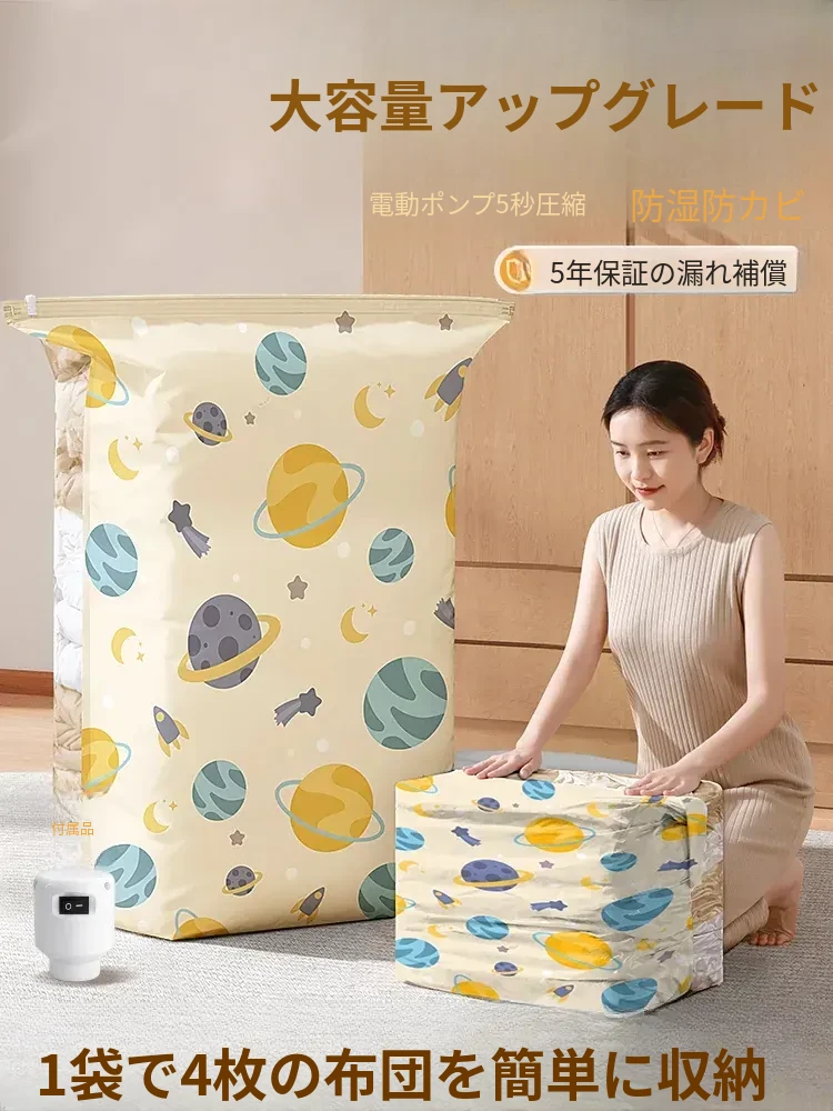 真空圧縮袋 布団や衣類をスッキリ収納!衣類やダウンジャケットもコンパクトに!電動ポンプ付きで簡単抽気、厚手素材で安心!整理整頓が楽々!