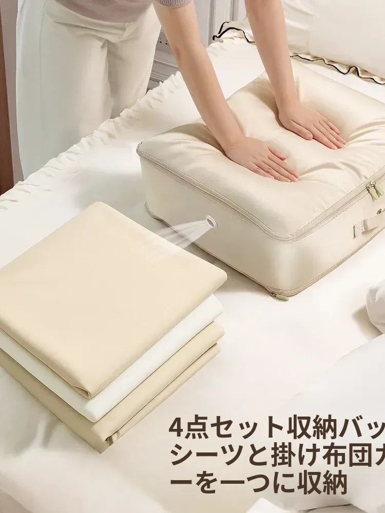 四点セット収納バッグ - シーツ、布団カバー、エアコンブランケット専用整理袋!旅行や衣類の圧縮にも最適!お部屋をスッキリ整理整頓、コンパクトに収納して快適な空間を実現!
