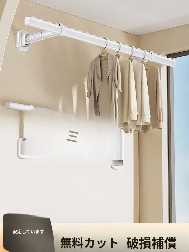 壁掛けタイプの折りたたみ式アルミ合金サイド干し竿 - 風に強い!バルコニー固定用、家庭用に最適で、スペースを有効活用!おしゃれで実用的な衣類干しラックで、毎日の洗濯をもっと楽に!