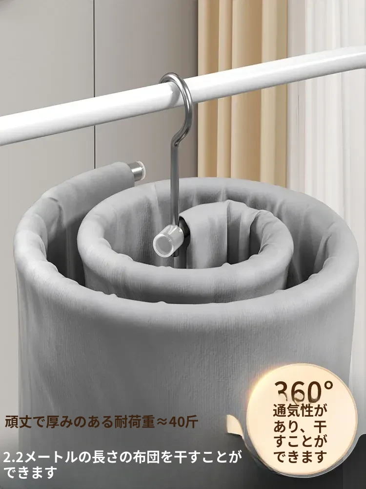 ドイツ製!陽台専用の螺旋式布団干し器具 - 多機能衣類ハンガーで、掛け布団カバーやベッドカバーも簡単に乾燥!おしゃれで便利な家用アイテムを手に入れよう!