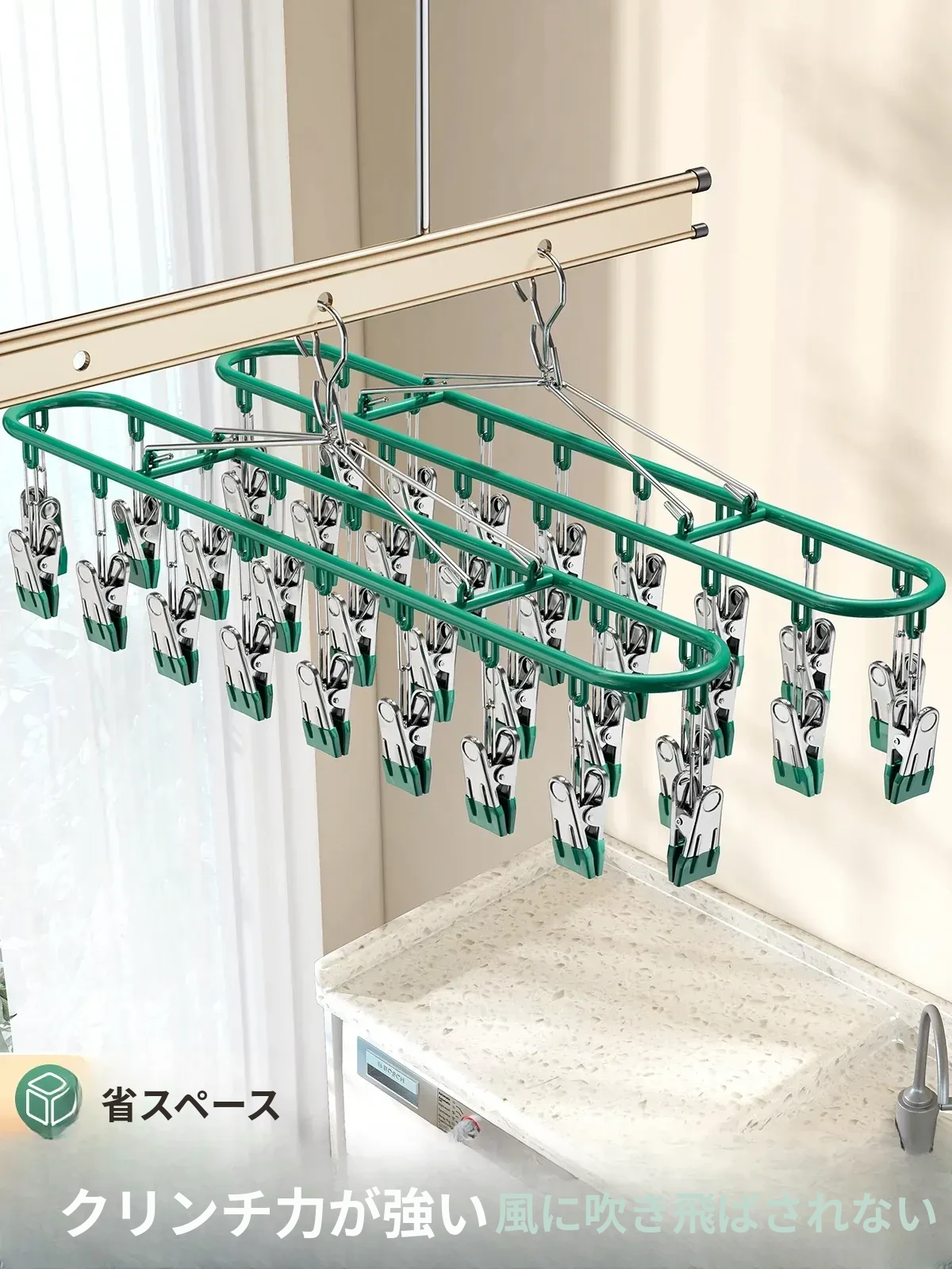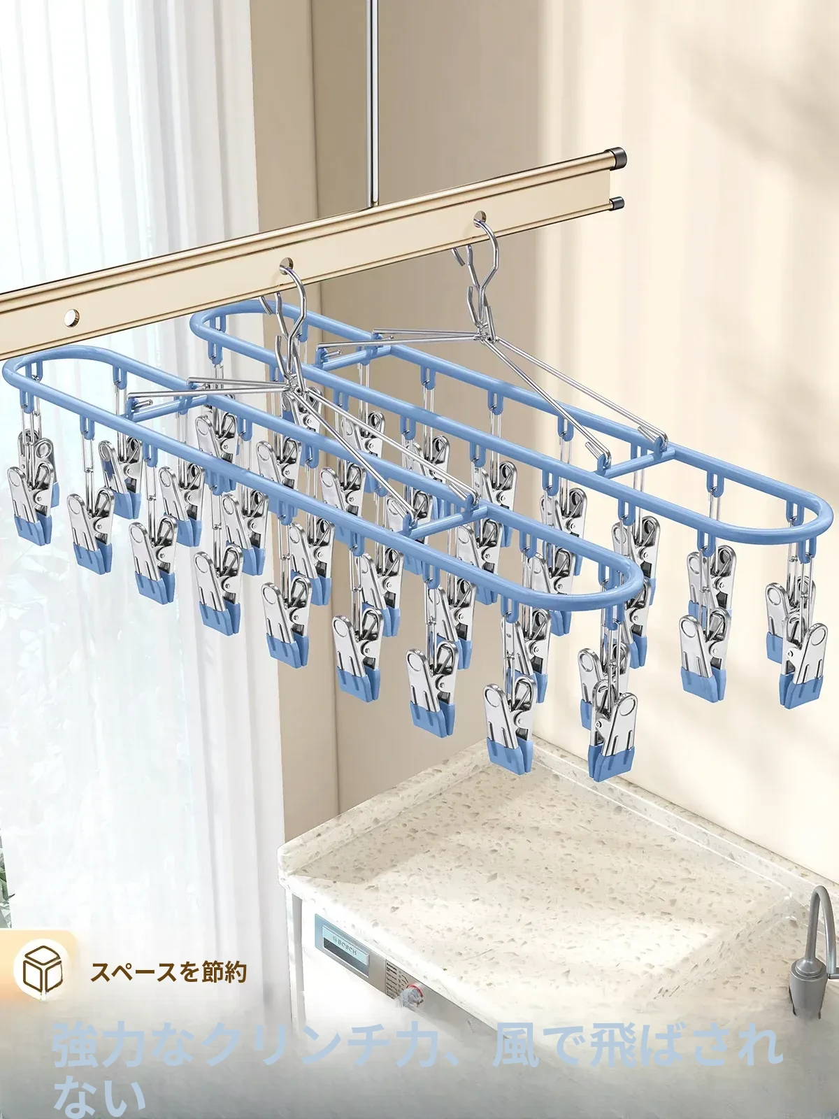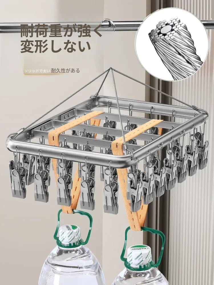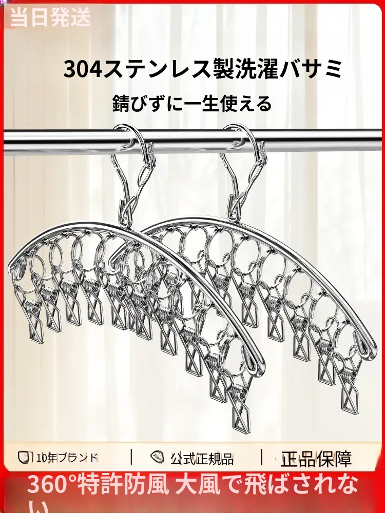 ステンレス製ソックス干し神器!バルコニー用多機能干しラック、風に強いソックスクリップ付きハンガー。家での便利な掛けフックで、快適なお洗濯ライフを実現!
