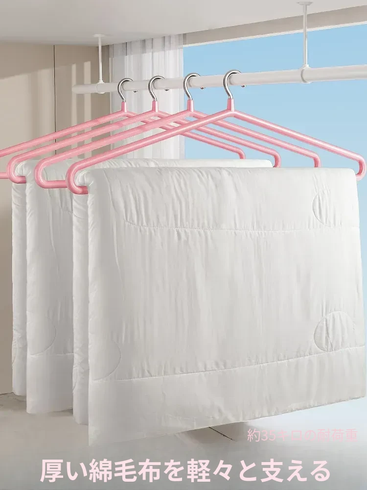 バルコニーに最適!スペースを有効活用できる多機能ステンレス製厚手コートハンガー - ふかふか布団も楽々干せる、家庭用で場所を取らない便利アイテム!