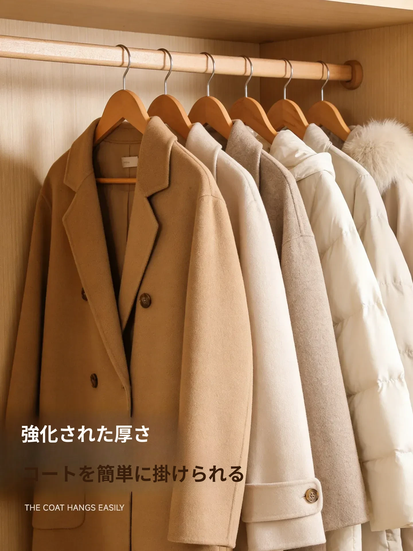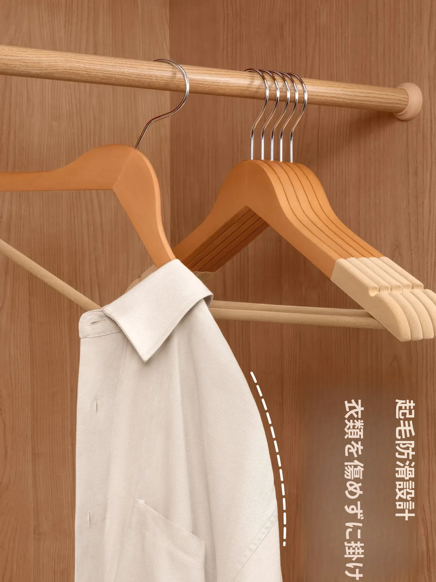 整理士おすすめの高級ビーチ材ハンガー - 高級感溢れるデザインで衣類をしっかり支え、滑り止め機能付きで衣類がずれ落ちない!おしゃれな収納で、あなたのクローゼットをグレードアップ!
