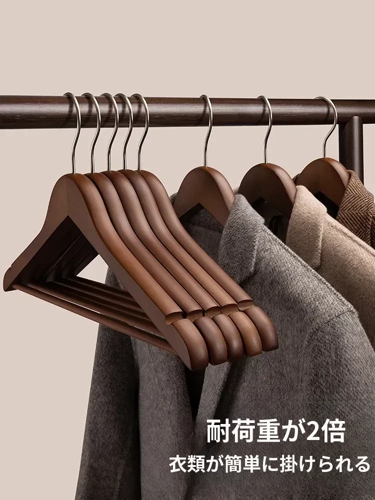 高級感溢れる無痕防滑木製ハンガー - 家庭用・ホテル・服装店に最適!頑丈な無垢材で、衣類を優しく支え、滑らずしっかり保持。おしゃれな収納で衣類を美しく演出!