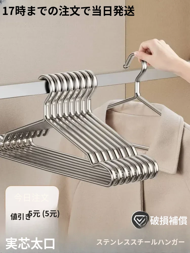 耐熱性抜群!太めのステンレス製ハンガー - 家庭用、バルコニーや寮に最適!頑丈でしっかりしたデザイン、衣類をしっかり支える安心感。さあ、あなたの衣類を美しく保ちましょう!