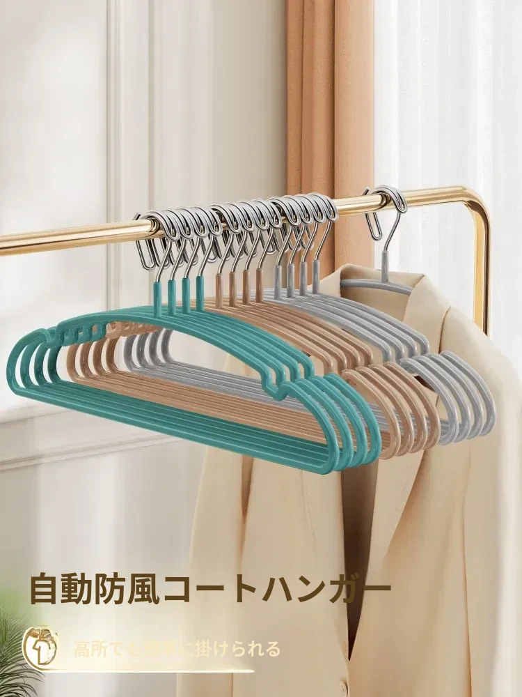 風に強い!20個セットの自動ロック式衣類ハンガー - 高層バルコニーでの衣類干しも安心!落下防止&無痕設計で大切な衣類を守ります。