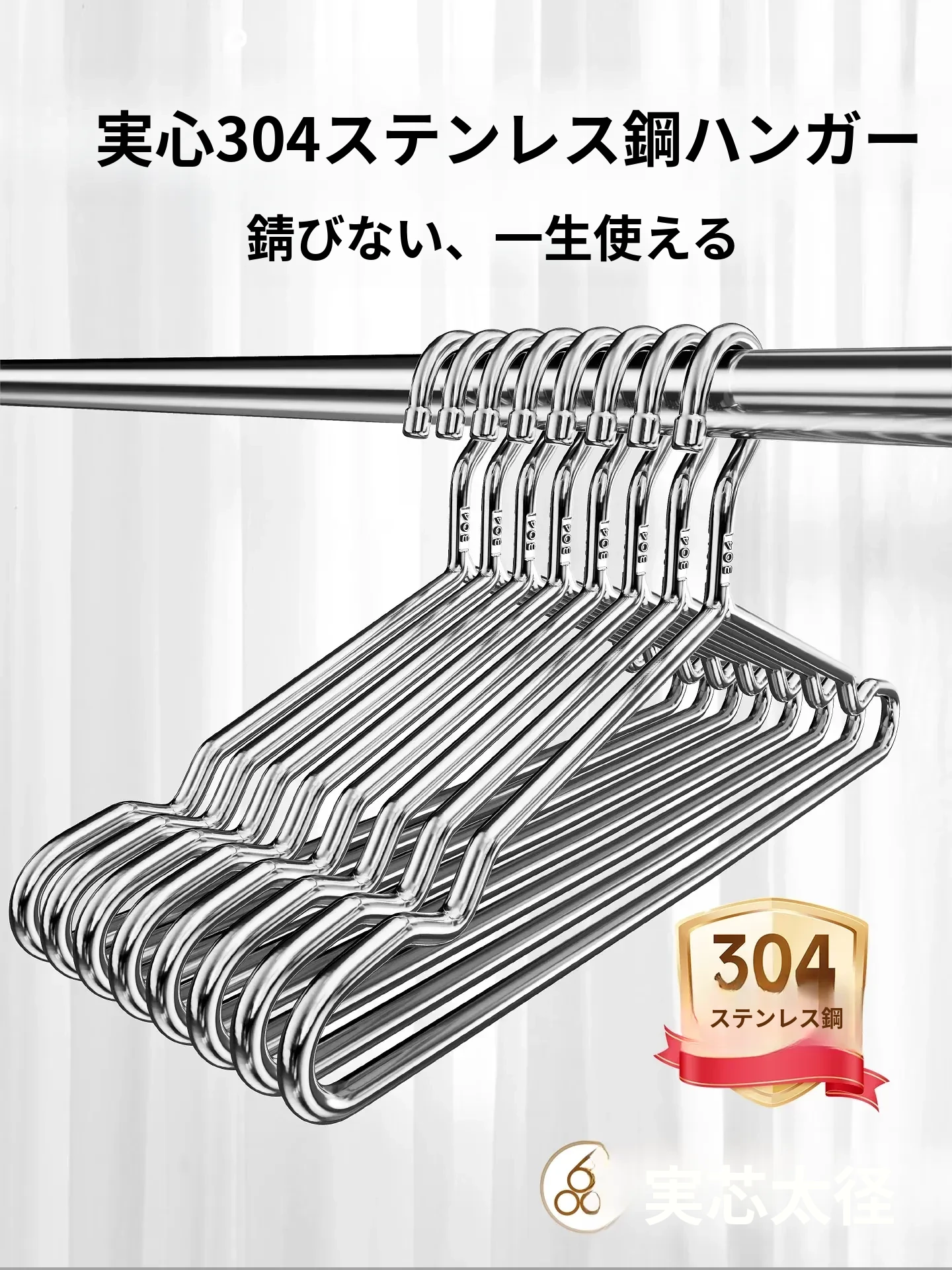 304ステンレス製ハンガー - 丈夫で太い、家庭用の衣類干しハンガー!バルコニーや寮に最適なしっかりした構造で、安心してお洗濯物を干せます。大容量で使いやすい!