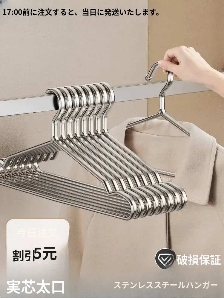 304ステンレス製衣類ハンガー - 家庭用・太型・厚型・滑り止め設計で衣服をしっかり支える!無痕でおしゃれな衣類干しに最適!