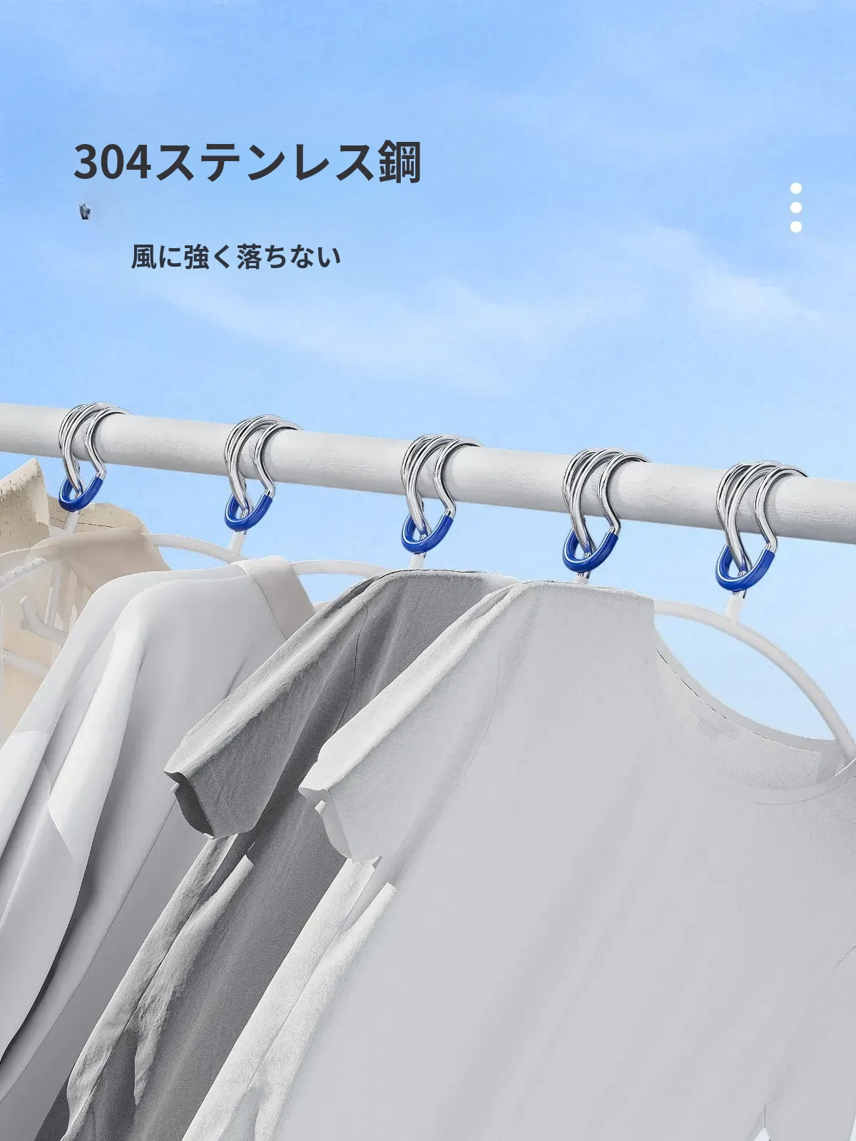 風に強い304ステンレス製衣類干し棒固定クリップ - 滑り止め設計で屋外でも安心して使用できる!お洗濯物をしっかりサポートする防風固定クリップです。