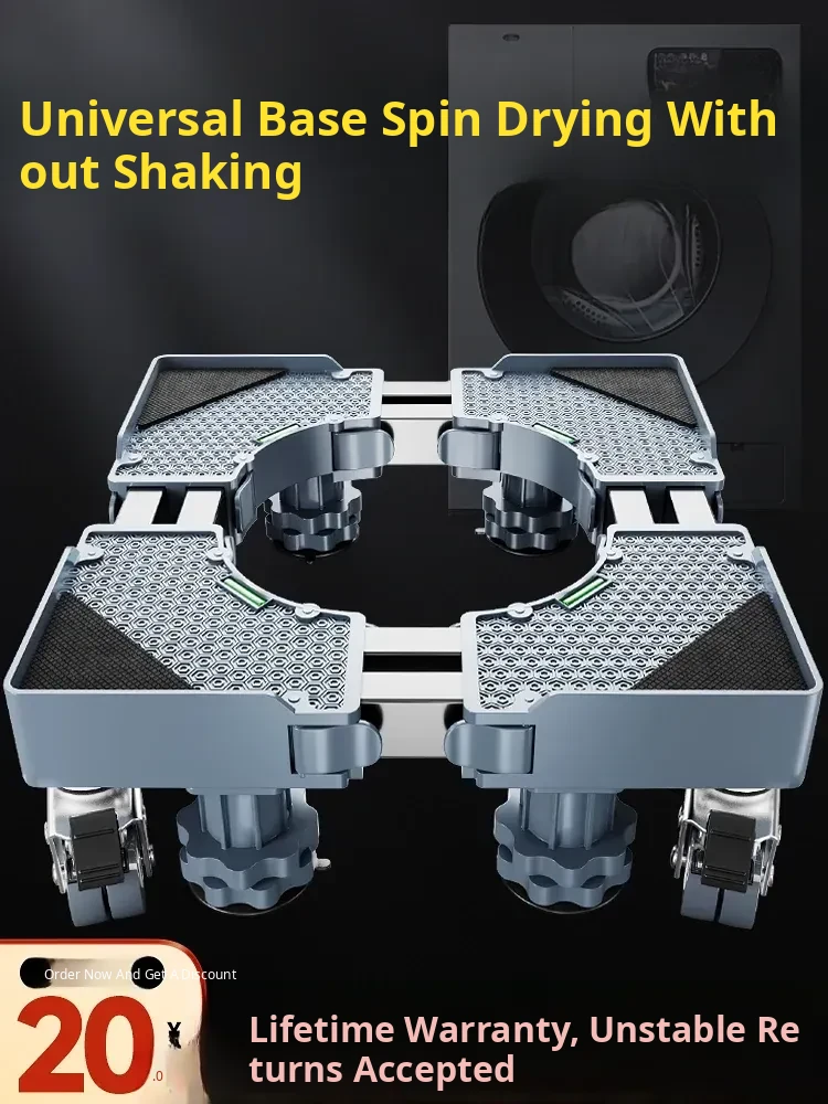 Universal Mobile Base with Swivel Wheels for Washing Machines and Refrigerators - Adjustable Height, Shockproof Pads, Perfect for Rolling Drum Appliances!