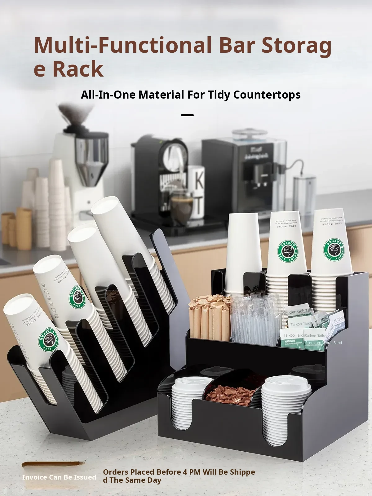 Acrylic Cup Holder Rack for Milk Tea and Coffee Shops - Compact Storage Solution for Paper Cups and Straws at Your Bar Counter