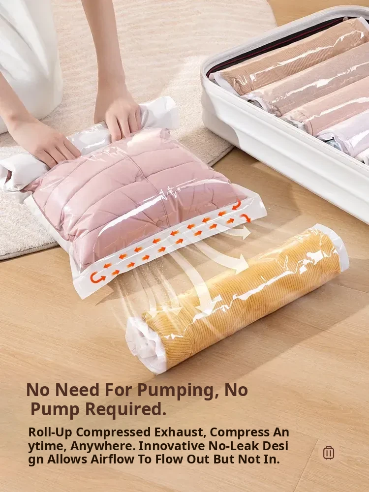 Travel Vacuum Compression Bags for Luggage - No Pump Needed, Perfect for Clothes, Jackets, and Down Coats. Space-Saving Roll-Up Storage Bags for Easy Packing and Organization!