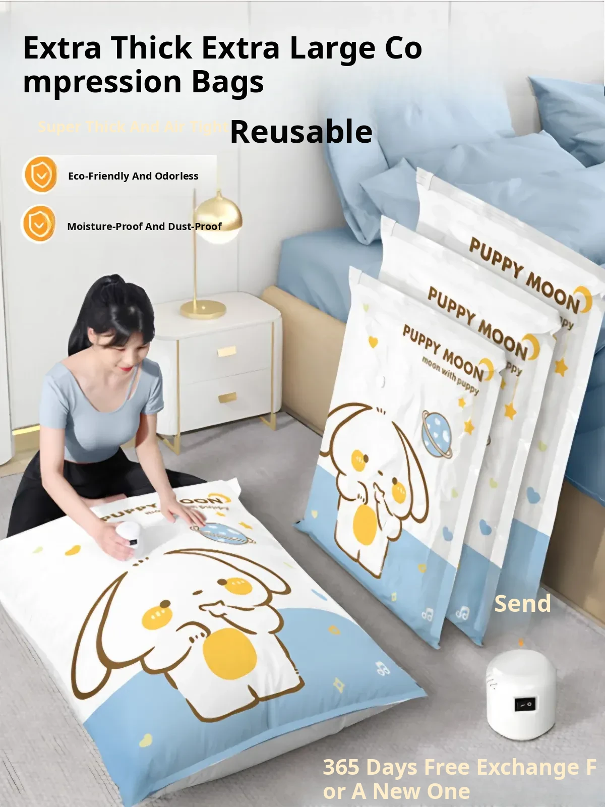 Extra Large Vacuum Storage Bags for Duvets, Clothes, and Bedding - Thickened Compression Bags with Electric Pump for Home Use, Perfect for Saving Space!