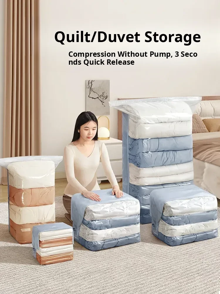 Space-Saving Vacuum Storage Bags - No Pump Needed! Perfect for Comforters, Clothing, and Down Jackets. Ideal for Home Organization and Efficient Storage Solutions. Keep Your Items Tidy and Maximize Space!