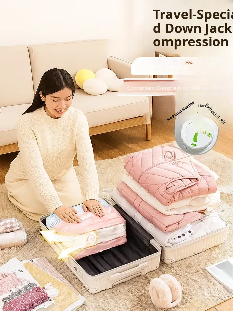 Vacuum Compression Bags - No Pump Needed for Space-Saving Storage of Down Jackets, Clothes, and Travel Items - Durable, Extra Thick Packing Solution for Suitcases and Home Use