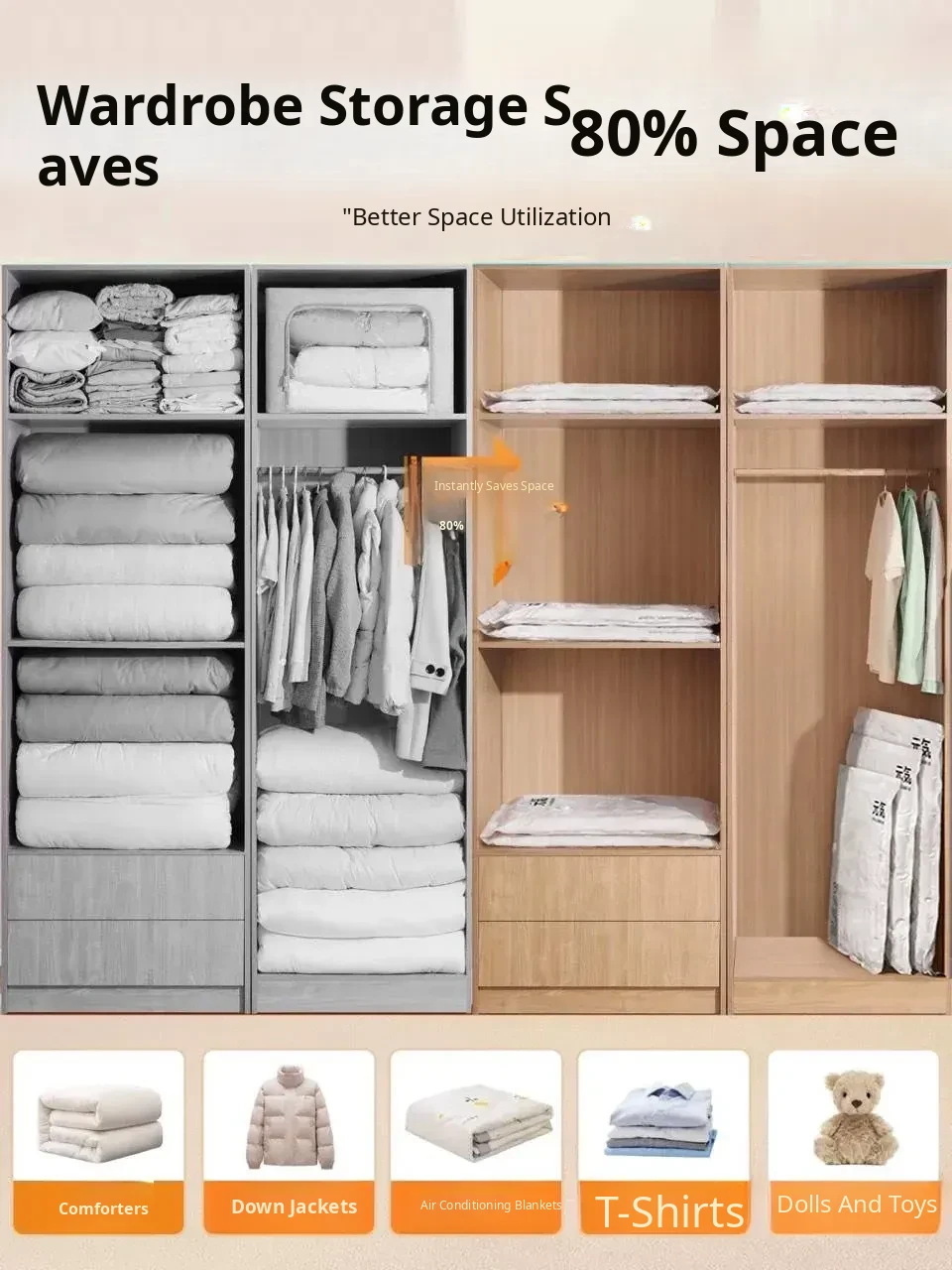 Vacuum Storage Bags for Down Jackets, Comforters, and Clothes - Heavy-Duty Vacuum-Seal Bags for Packing and Space-Saving Storage Solutions