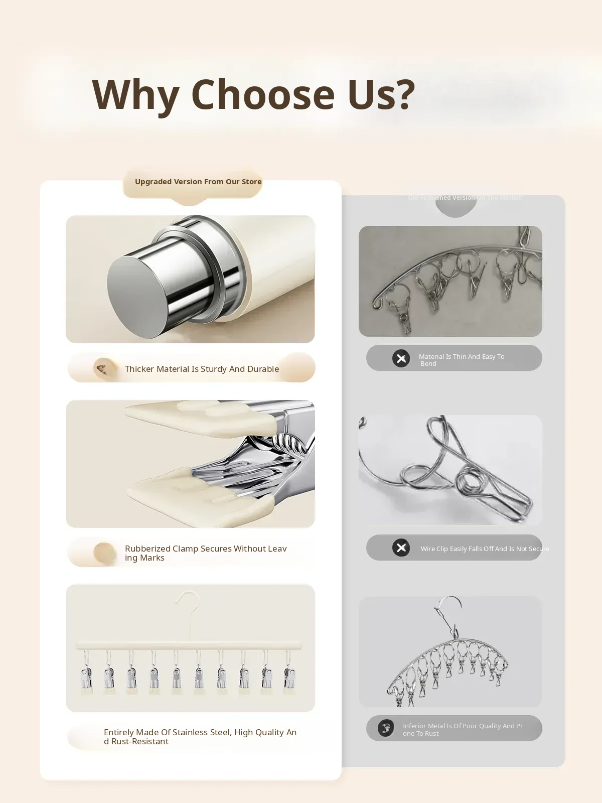 Stainless Steel Clothes Drying Rack - Non-Slip, Heavy-Duty Hangers for Bedroom Use, No Marks Left Behind, Durable and Sturdy Clothes Support