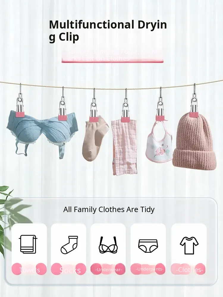 Multi-Clip Laundry Drying Rack – Home Clothes Clips & Sock Hangers, Windproof, No Trace Stainless Steel Mini Clothespins – Perfect for Indoor & Outdoor Use!