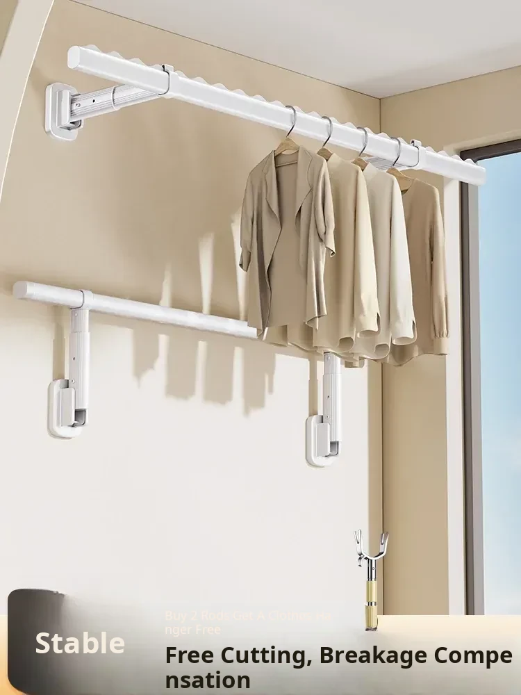 Wall-Mounted Folding Clothes Drying Rack - Space-Saving Side-Mount Clothesline for Balcony, Ideal for Home Use