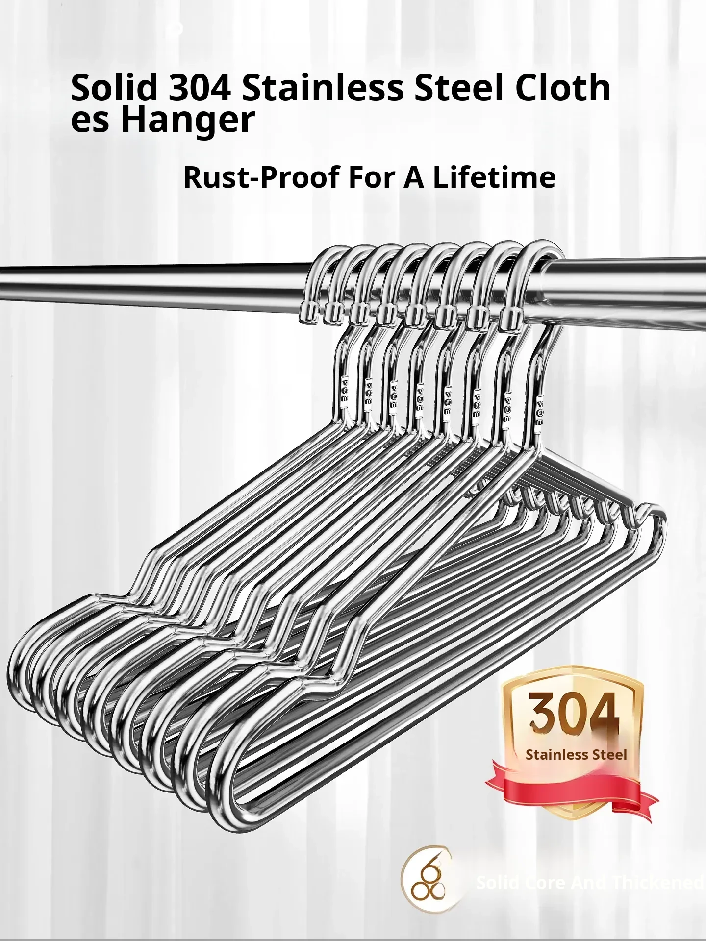 Heavy-Duty Non-Slip 304 Stainless Steel Clothes Hangers - Thickened Solid Design for Indoor & Outdoor Use, Perfect for Home Drying and Organizing!