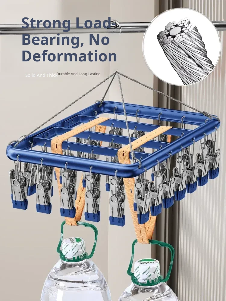 Aluminum Alloy Clothes Drying Rack with Multiple Clips - The Ultimate Sock and Underwear Drying Solution for Home, Featuring Durable Stainless Steel Design for Efficient Drying!