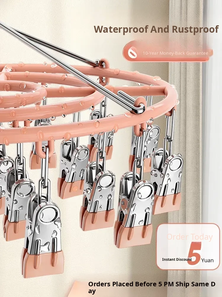 304 Stainless Steel Multi-Clip Clothes Drying Rack - Windproof Hook for Home Use, Baby-Friendly, Extra Thick, Perfect for Drying Socks and More!