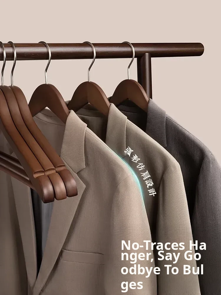 Japanese Wooden Non-Slip Hangers - Premium Solid Wood Clothes Rack for Home Use, No-Trace Design, Ideal for High-End Hotels, Natural Rustic Style
