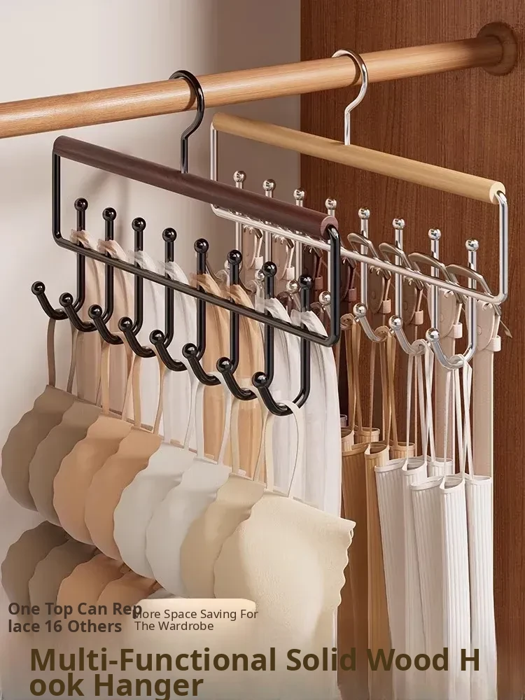 Multifunctional Wooden Hanger for Bras and Vests - Space-Saving Clothes Organizer for Home and Dorm, Wave-Design Hook Clothes Drying Rack