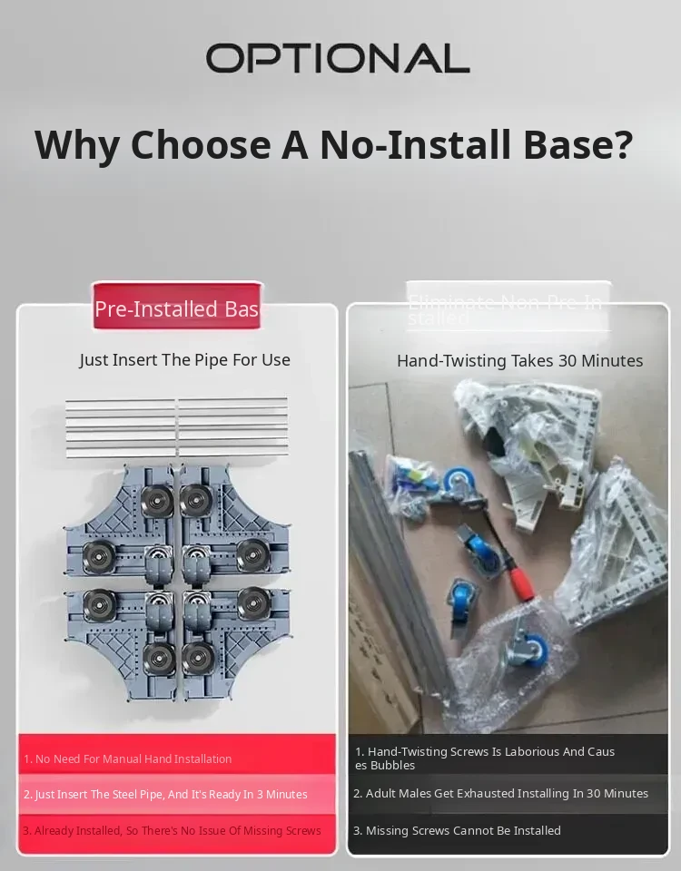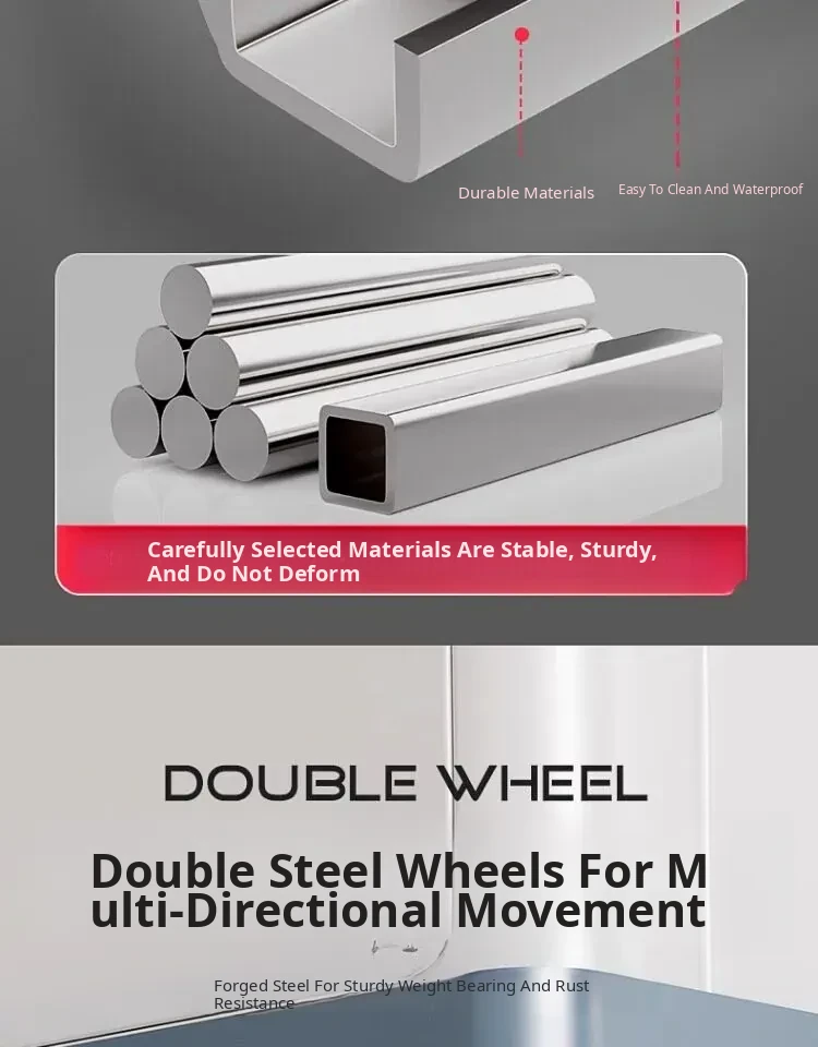 【Mobile & Stable】4 Double-Wheel Casters with Dual Brakes + 8 Support Legs + Dual Anti-Vibration Locks