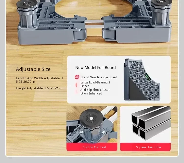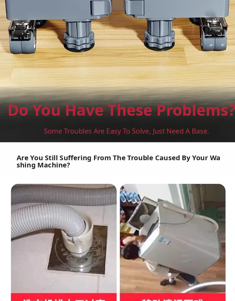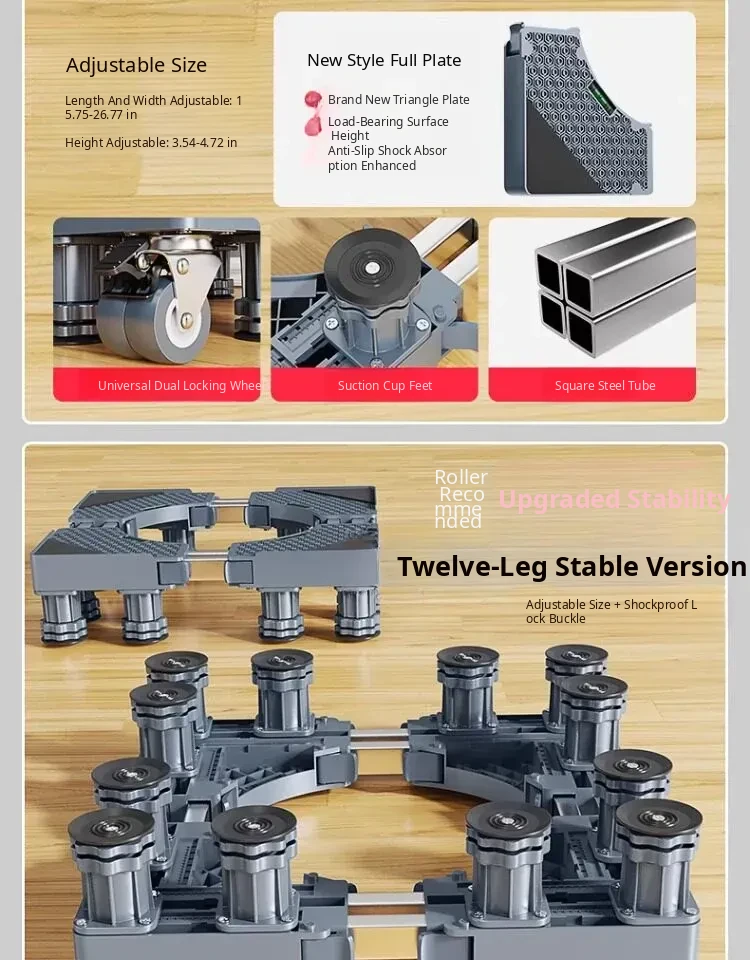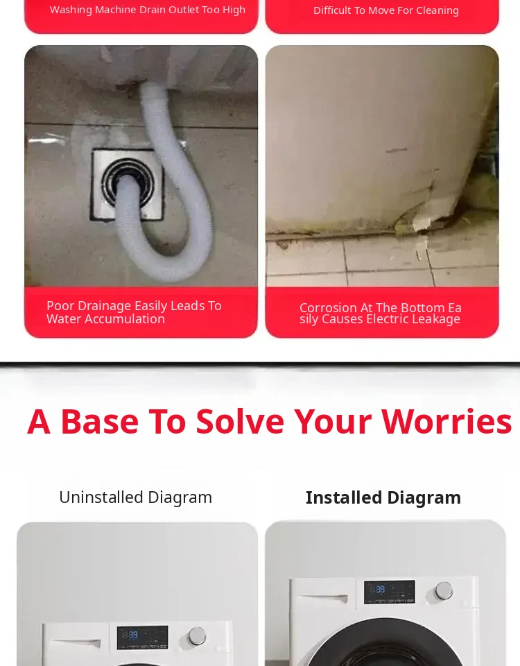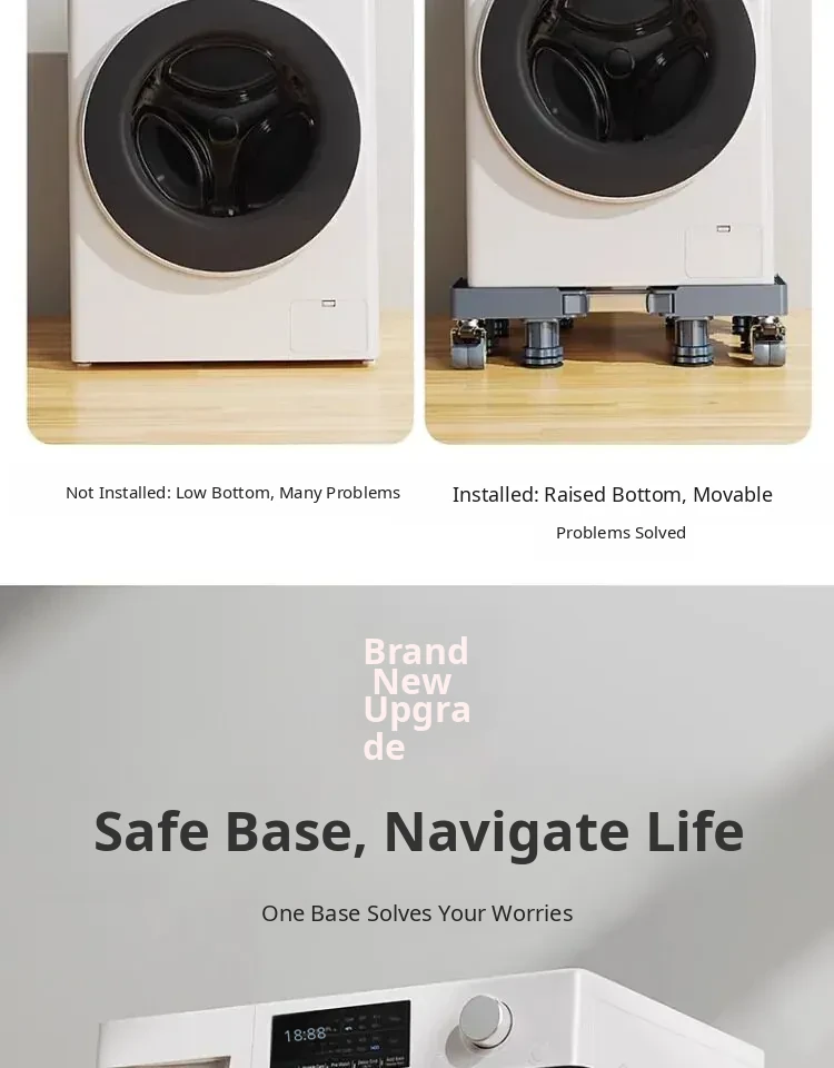 Adjustable Refrigerator and Washing Machine Base with Waterproof Storage Rack - Anti-Slip, Shock-Resistant Feet Pads for Enhanced Stability and Mobility