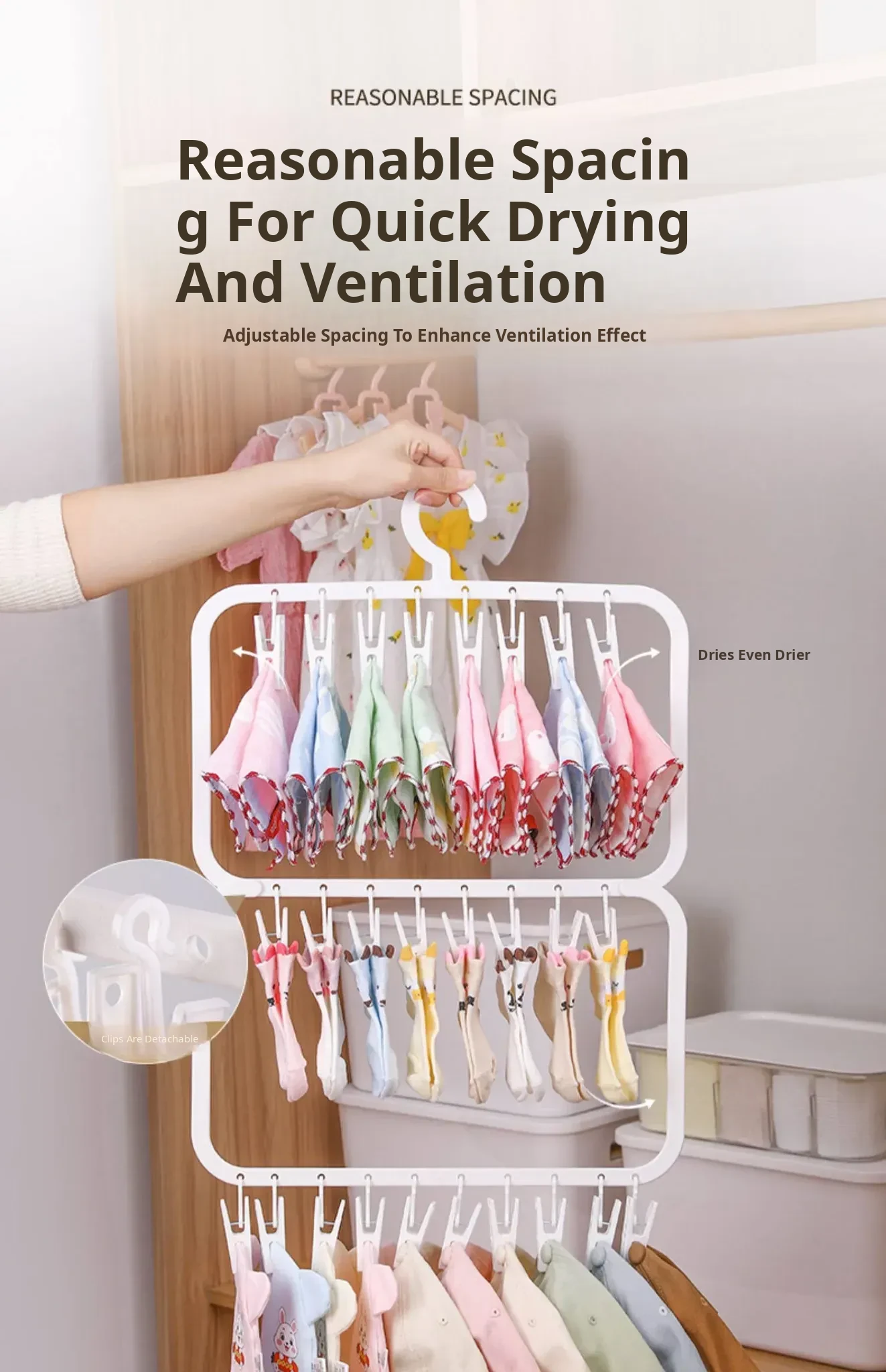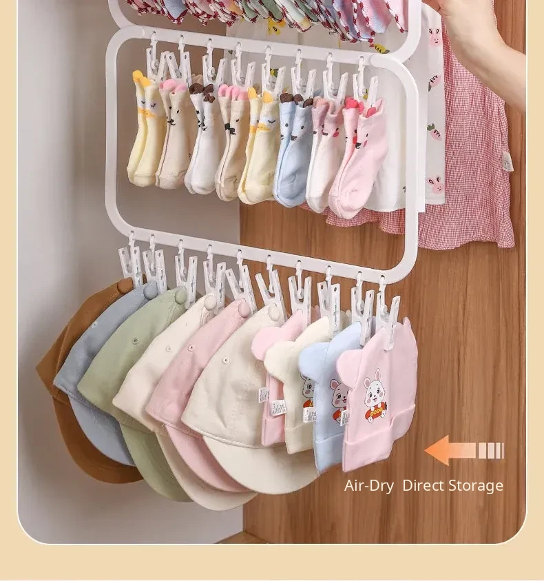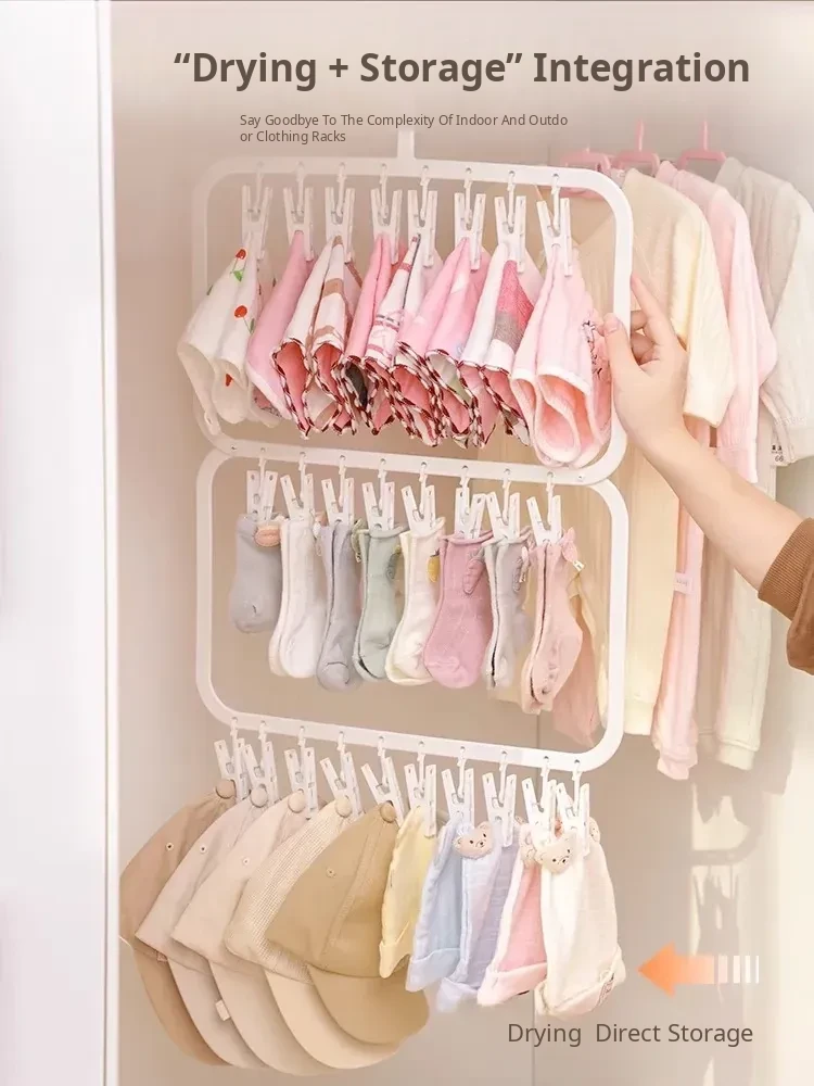 [Three Layers, 26 Clips] Storage and Drying Integrated Rack