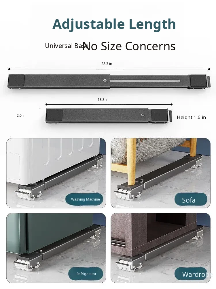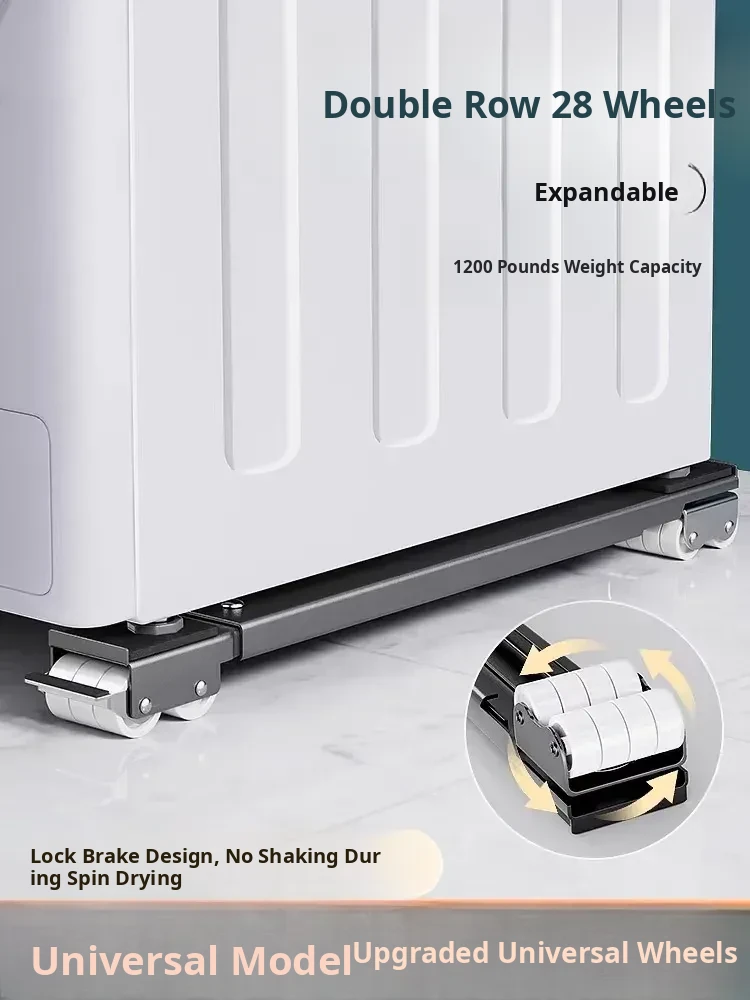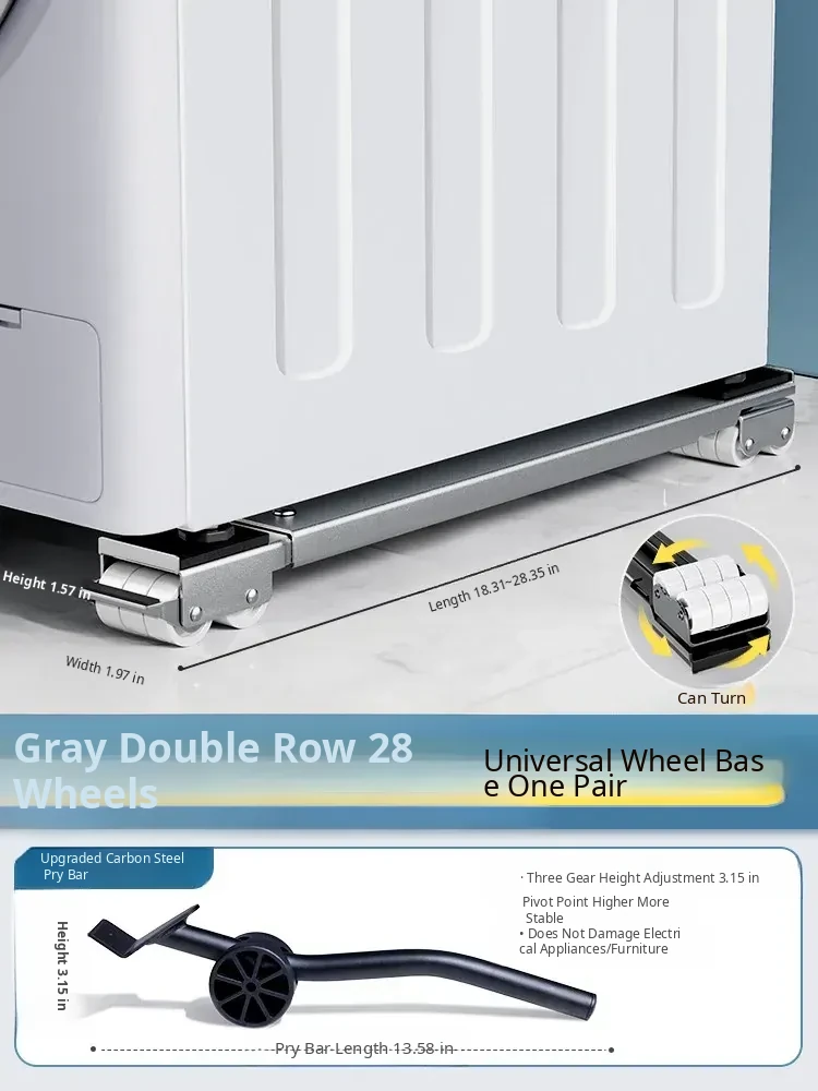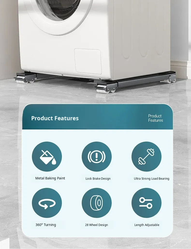 Mobile Washing Machine and Refrigerator Base with Universal Wheels - Adjustable Height Support Stand with Sliding Pads for Easy Movement and Stability