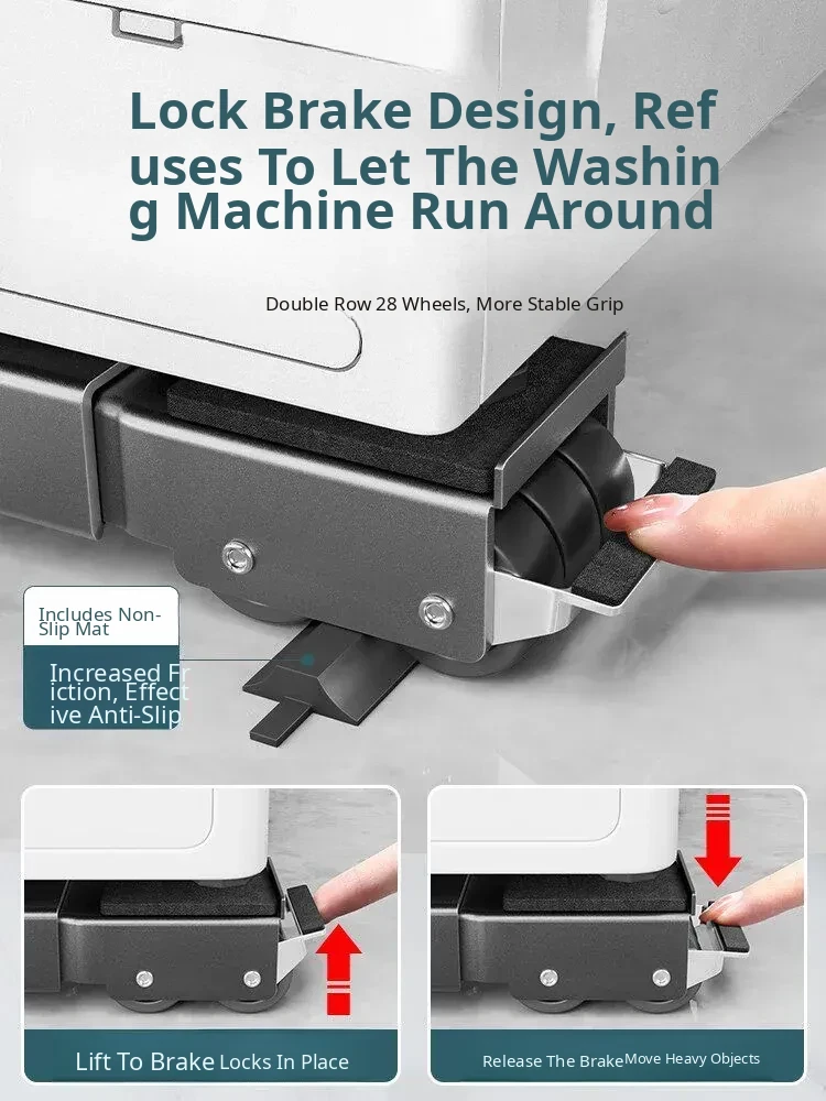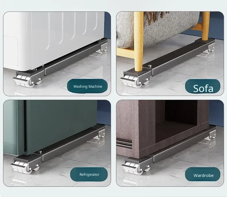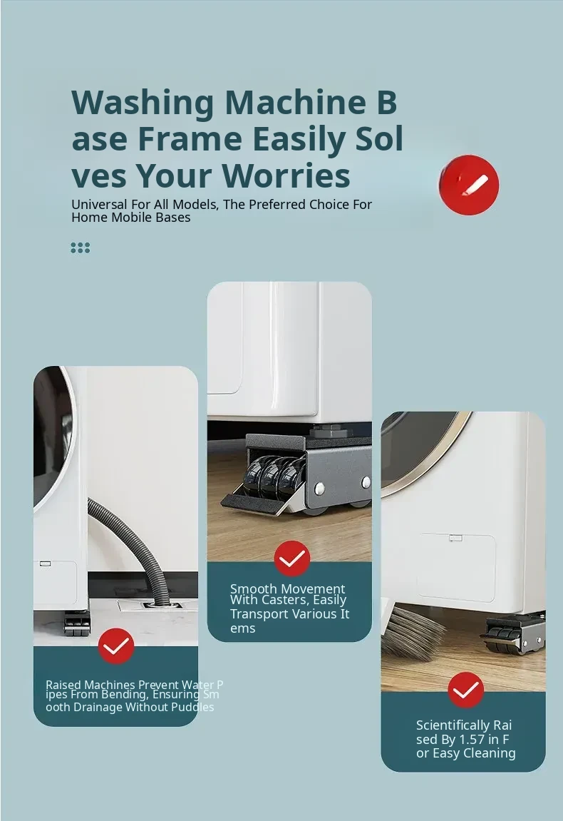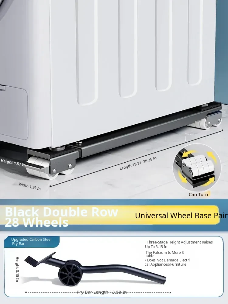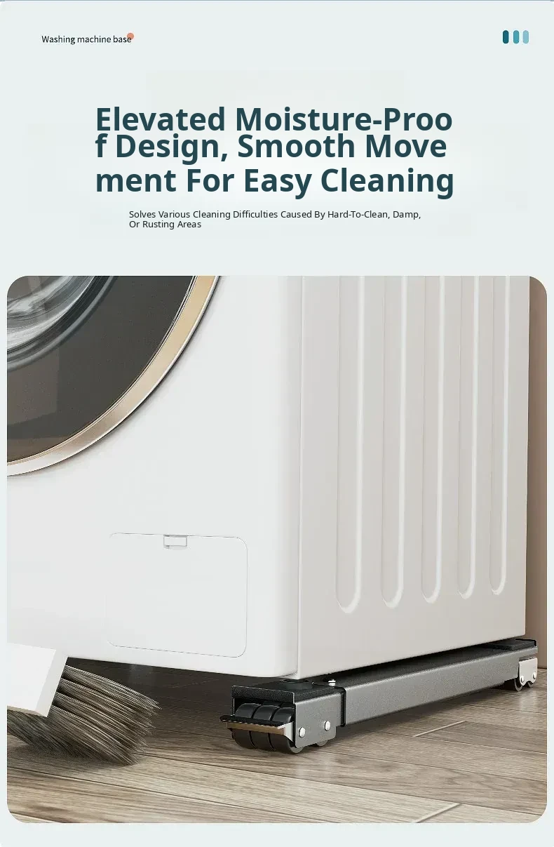 Mobile Washing Machine and Refrigerator Base with Universal Wheels - Adjustable Height Support Stand with Sliding Pads for Easy Movement and Stability