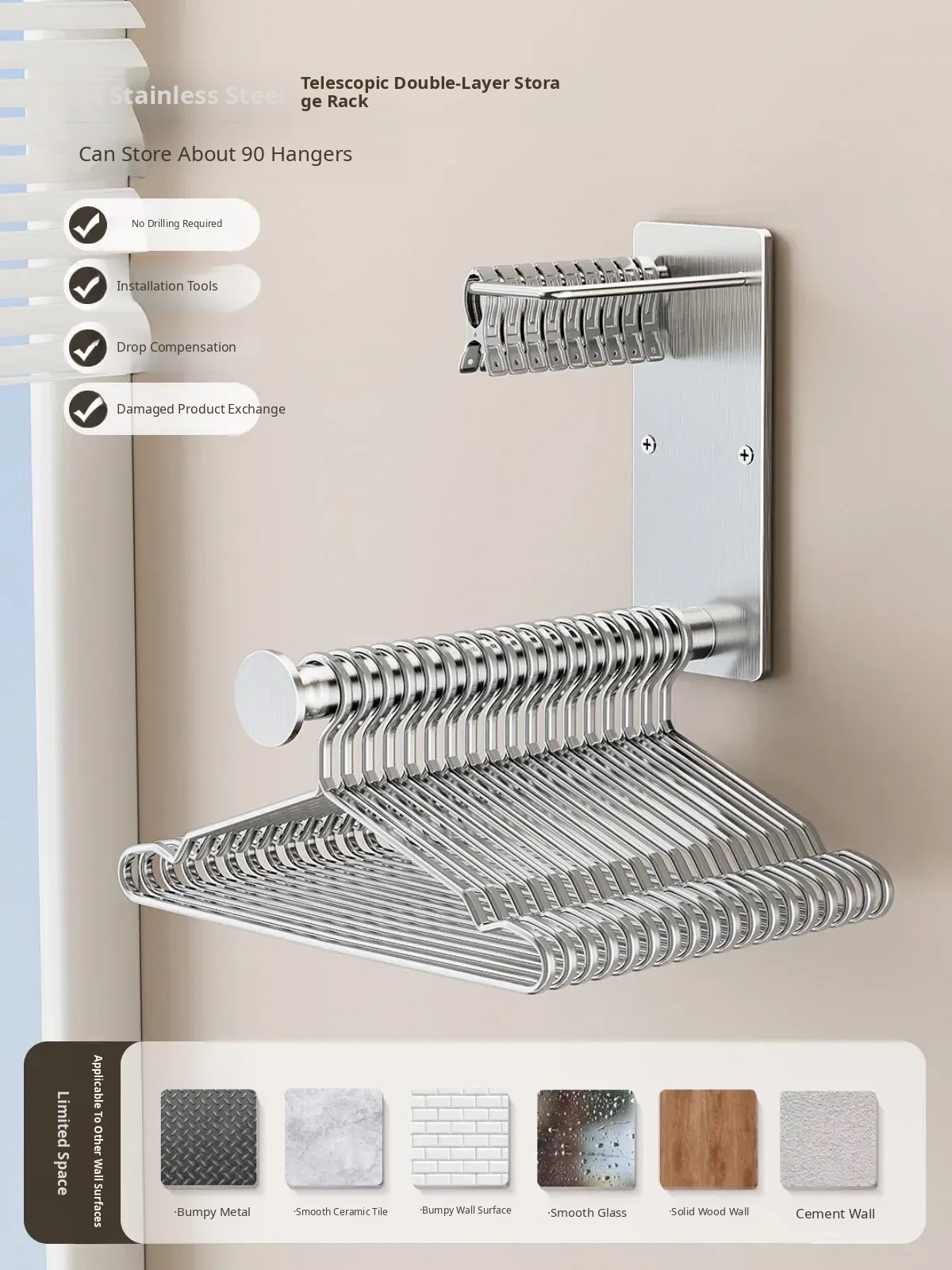 [304 Stainless Steel] Telescopic Double-Layer Clothes Hanger Storage Rack [Storage of about 90 Clothes Hangers]