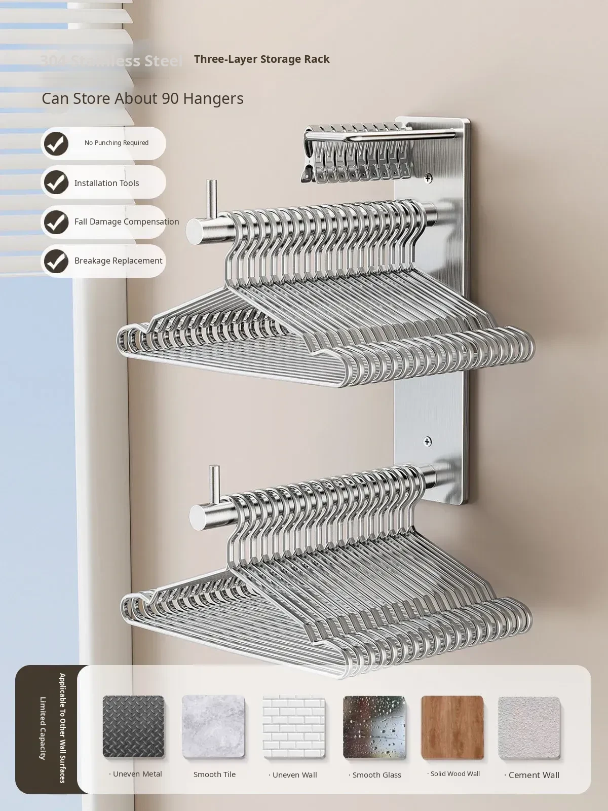 [304 Stainless Steel] Three-Layer Clothes Hanger Storage Rack [Storage of about 90 Clothes Hangers]