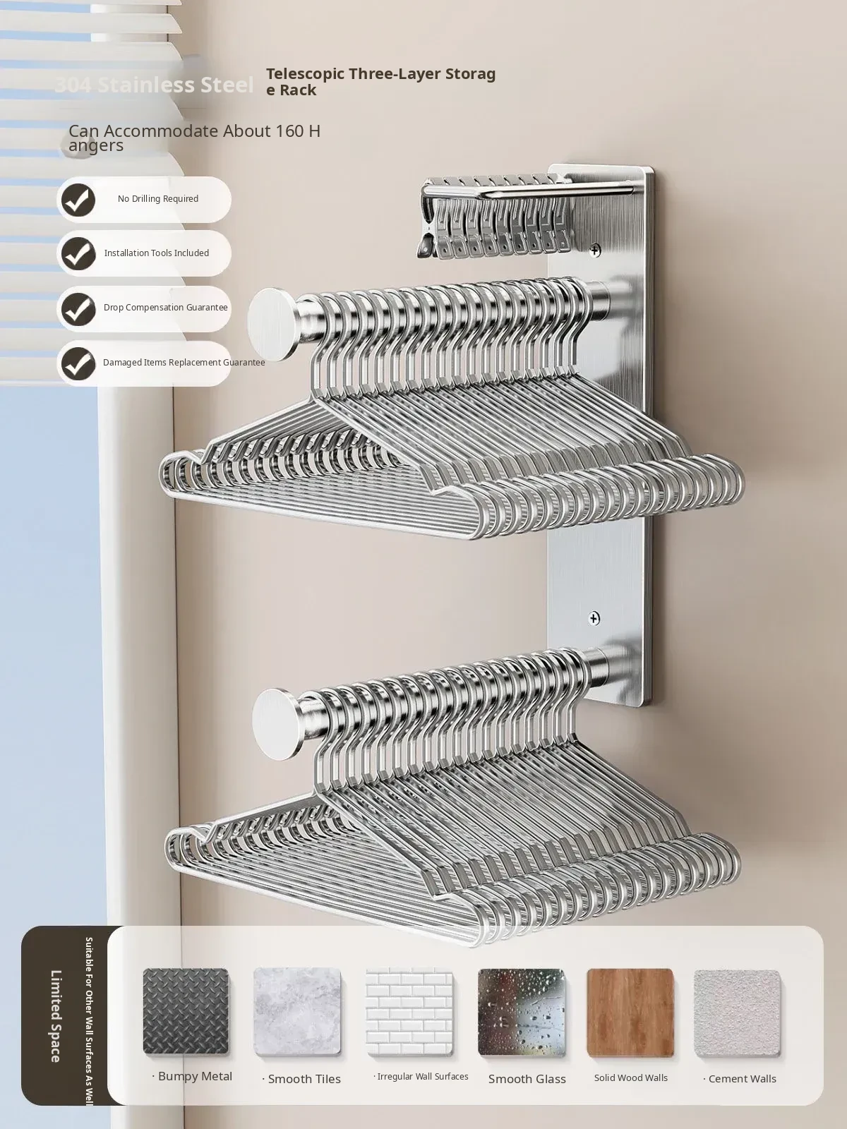 [304 Stainless Steel] Telescopic Three-Layer Clothes Hanger Storage Rack [Storage of about 160 Clothes Hangers]