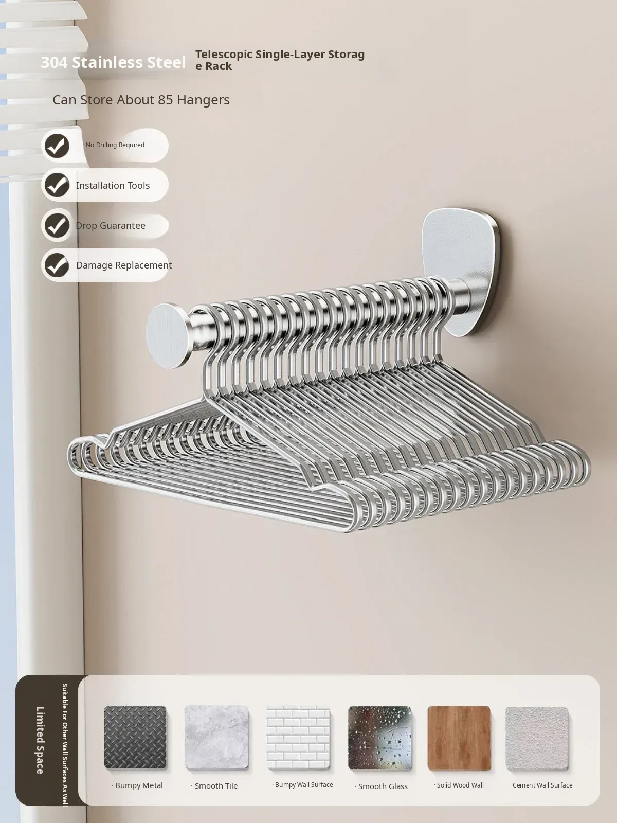 [304 Stainless Steel] Telescopic Single-Layer Clothes Hanger Storage Rack [Storage of about 85 Clothes Hangers]