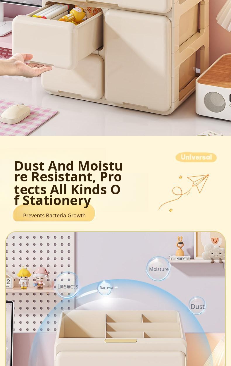 [Three-Layer Drawer Model] Cream White 3 Layers [High Quality/Durable Reinforcement]