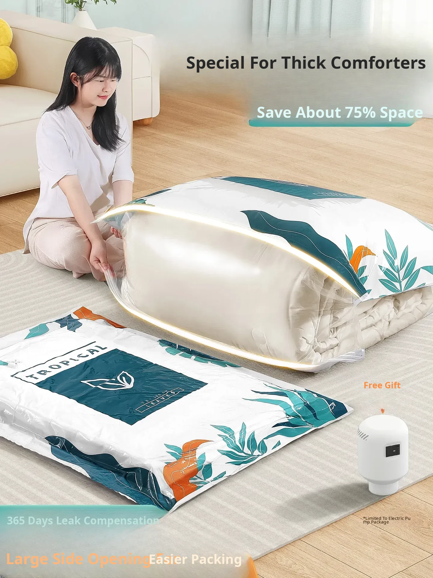 Horizontal Style 73 Liters (23.23in*17.32in*11.02in) Can Store 2 Beds of Autumn and Winter Quilts