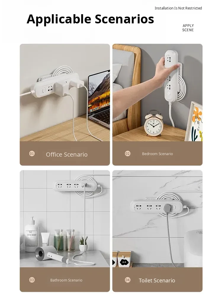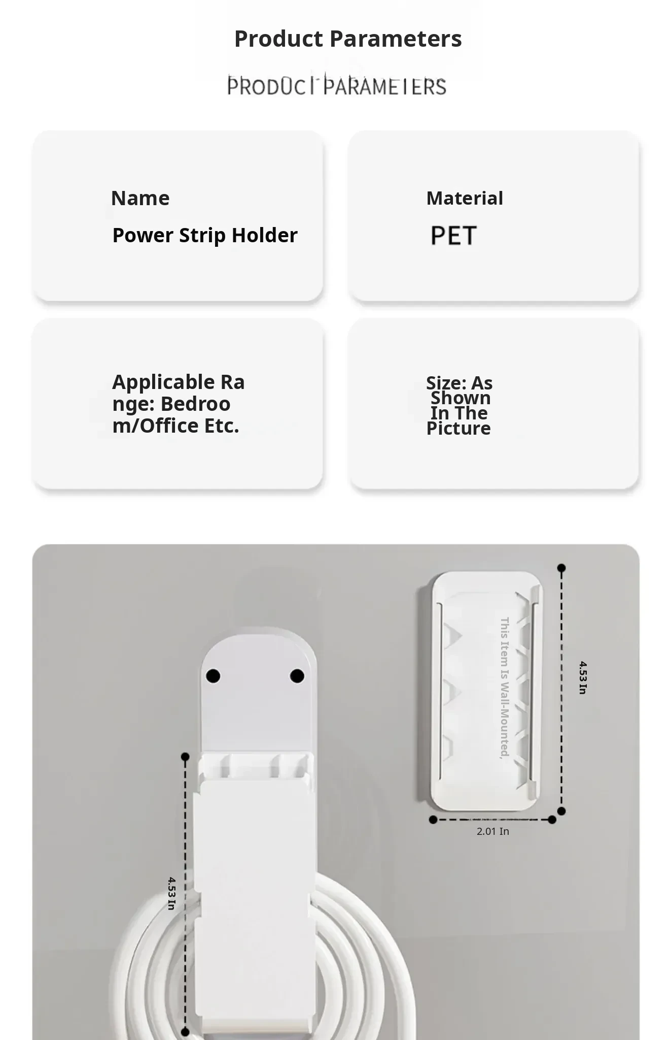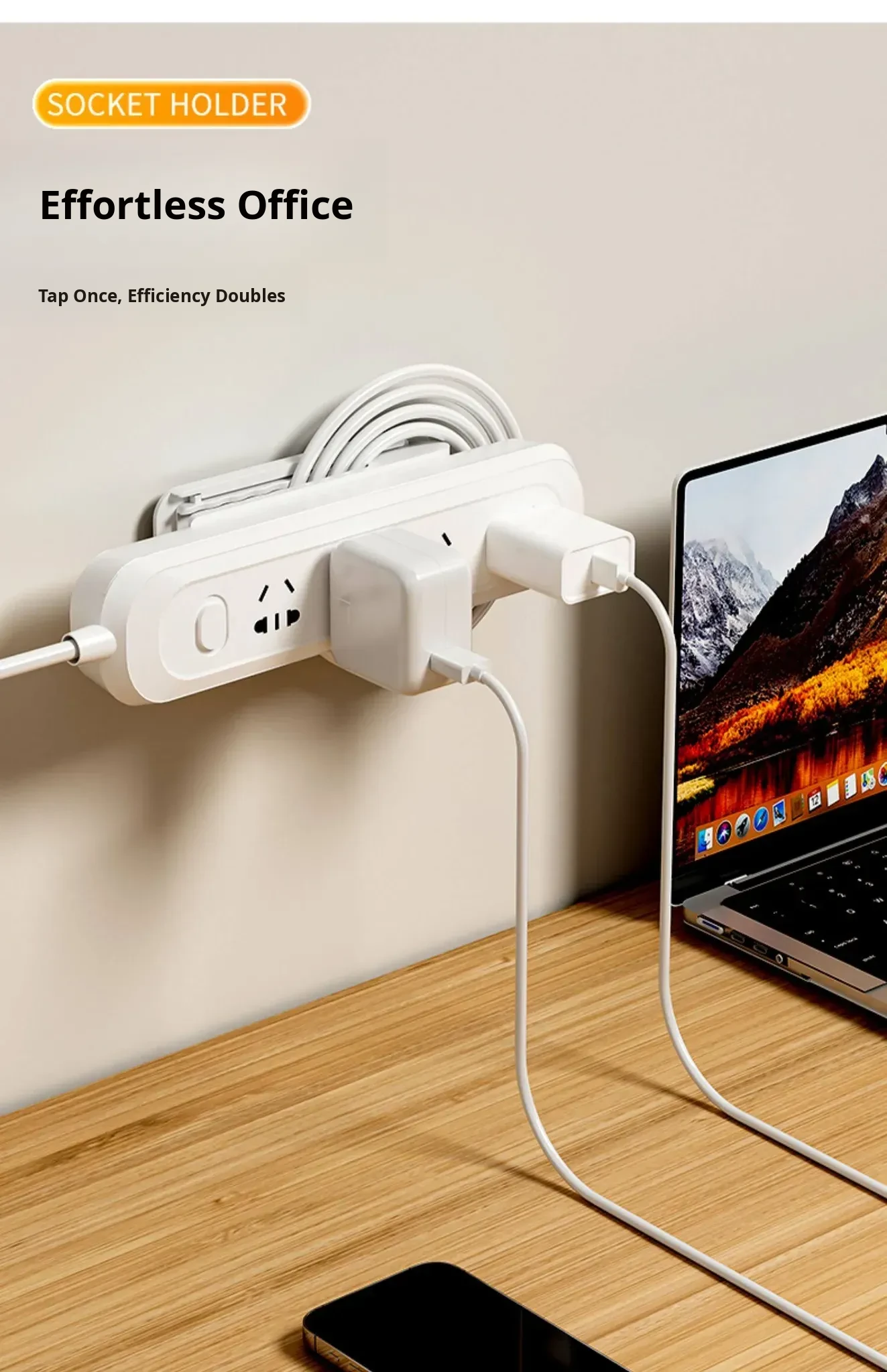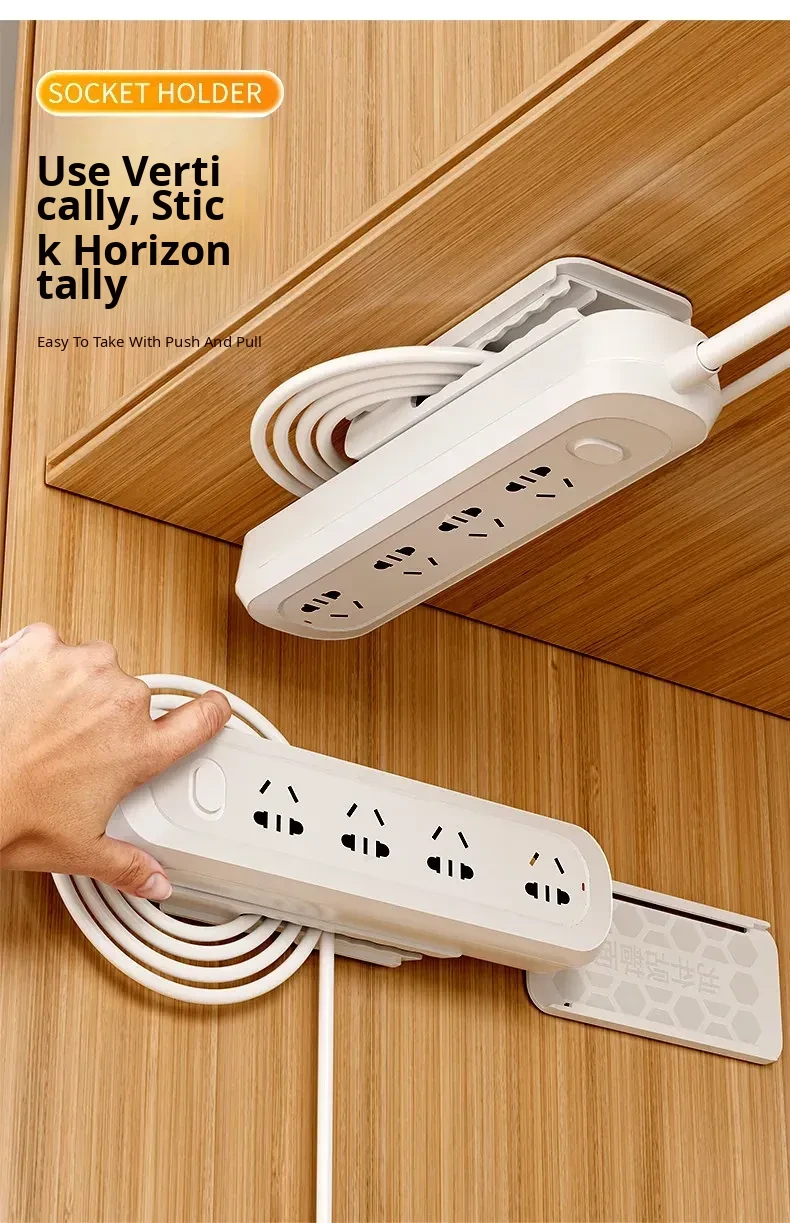 Wall-Mounted Power Strip Holder - No-Drill Cord Organizer for Easy Cable Management and Space-Saving Storage Solutions
