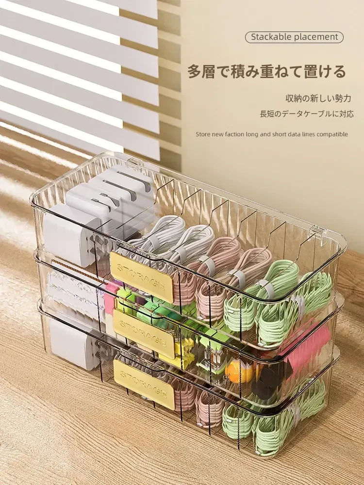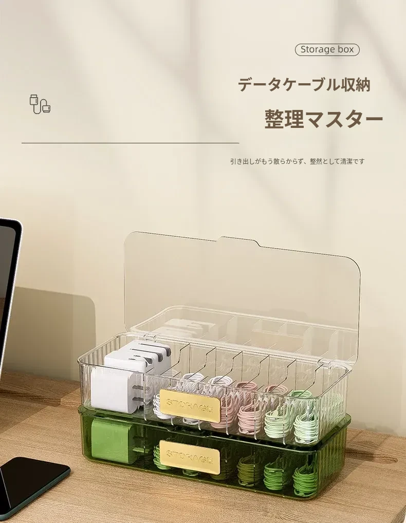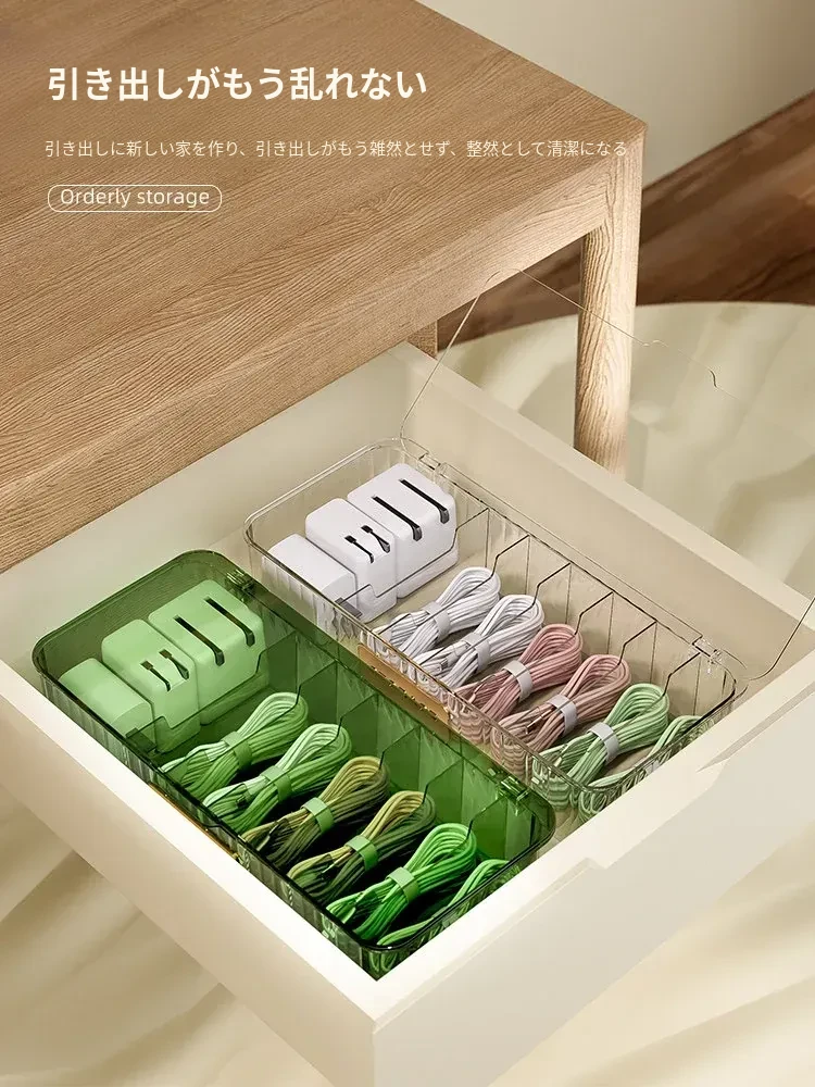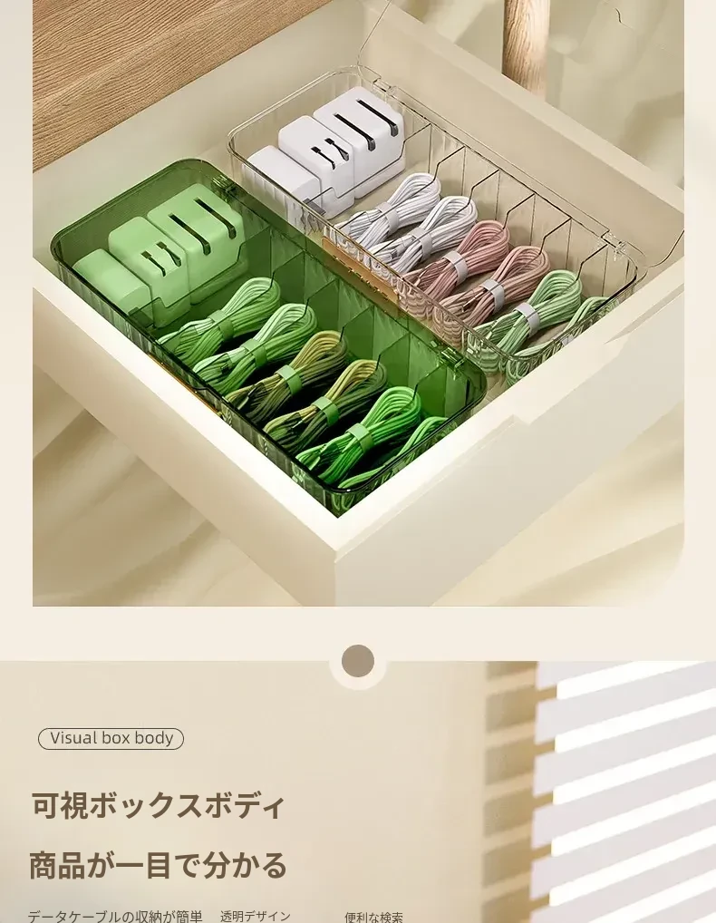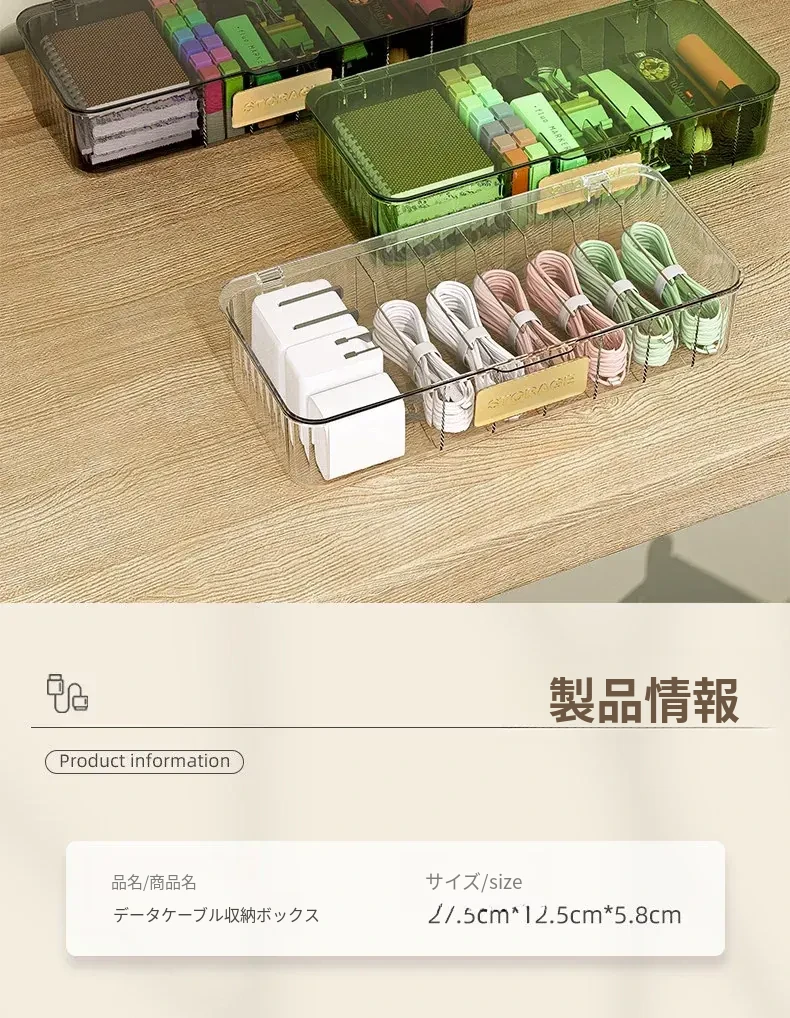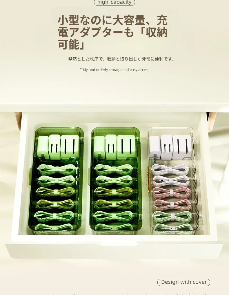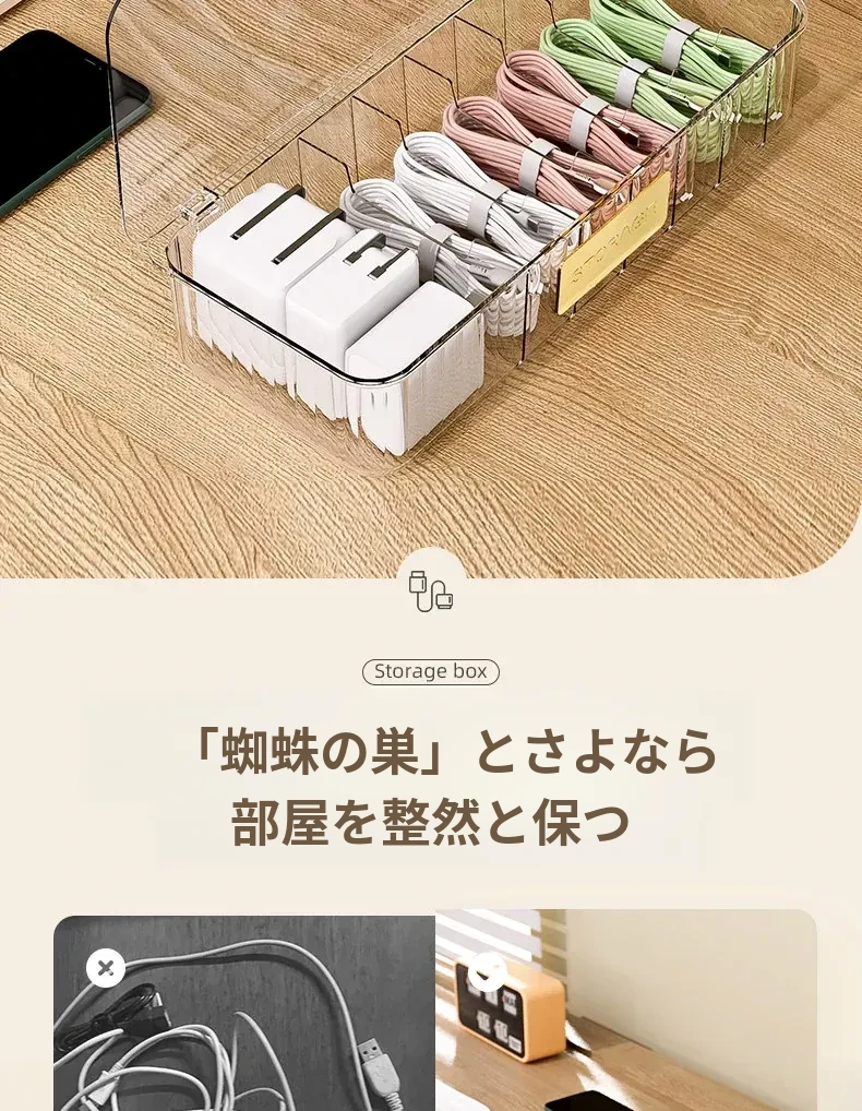 データケーブル収納ボックス|デスク用整理ボックス|電源充電ケーブル&スマホ充電器プラグのスッキリ整理に最適!絡まり防止の便利グッズ!
