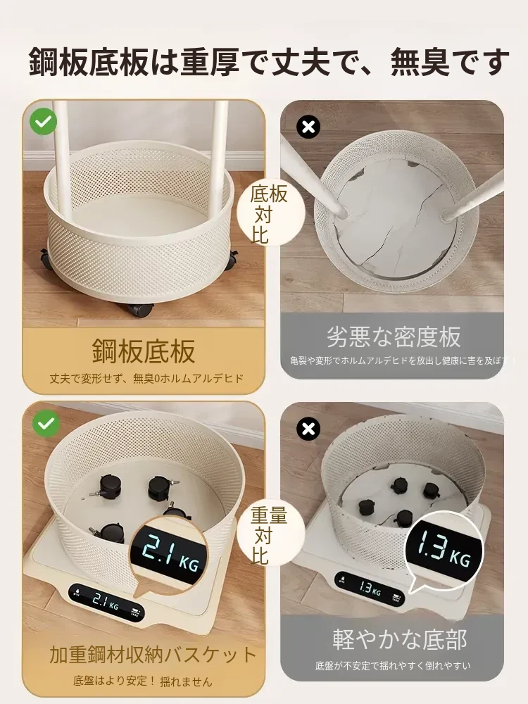 クリームホワイト 40cm幅【✅全炭素鋼0ホルムアルデヒド+静音キャスター】
