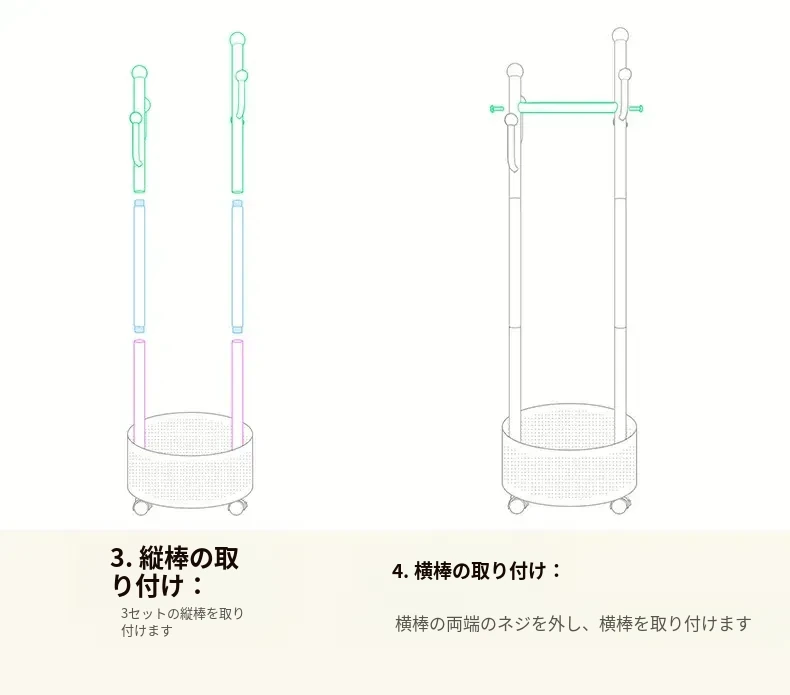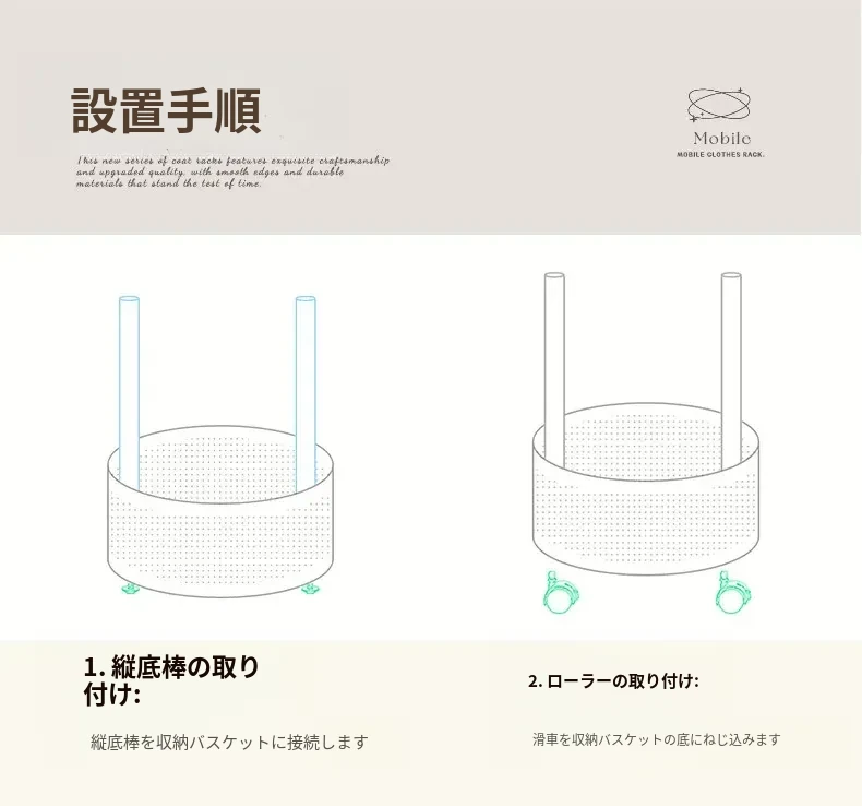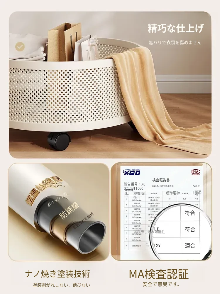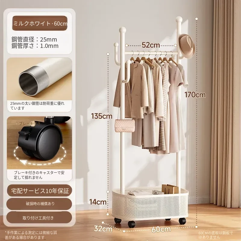 クリームホワイト 60cm幅【 ✅ 25mm太炭素鋼パイプ+静音キャスター】
