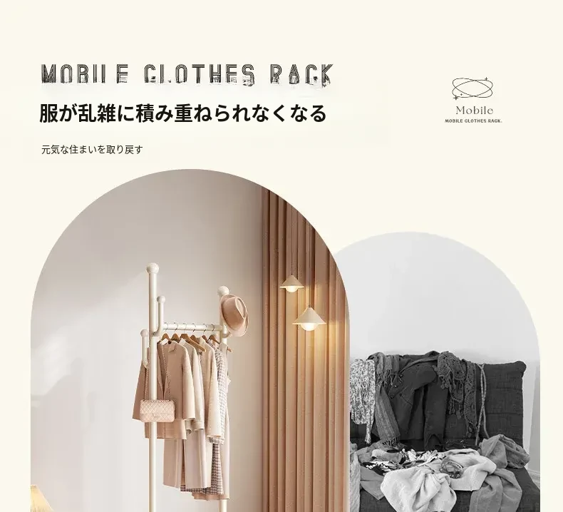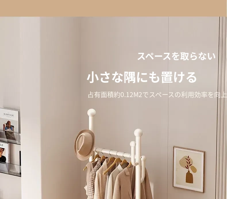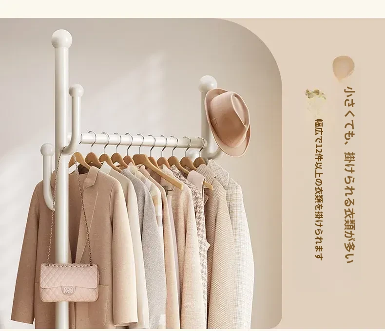 省スペースのハンガーラック - 寝室用小型衣類収納、コートやバッグも楽に収納できる!賃貸にも最適なスタイリッシュなデザインで、家のどこでも使える便利なアイテムです。