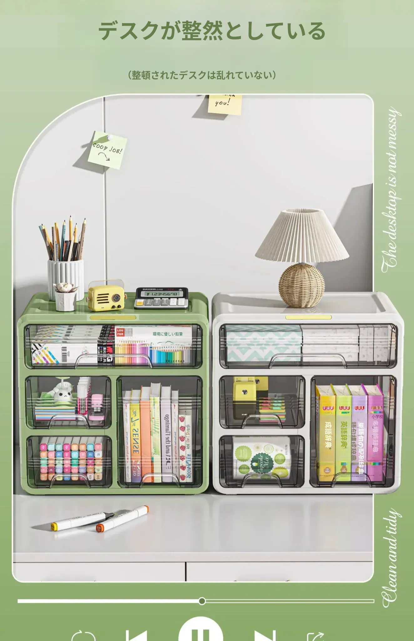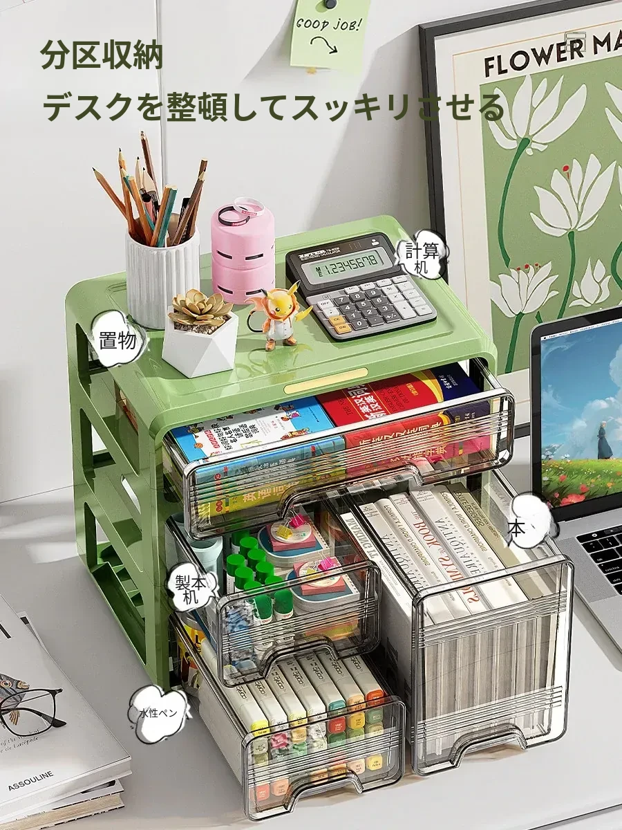 デスク上の整理整頓に最適!引き出し式デスク収納ボックス - オフィスや書斎にぴったりな小物や文房具、スナックもすっきり収納できる便利な収納ラック!