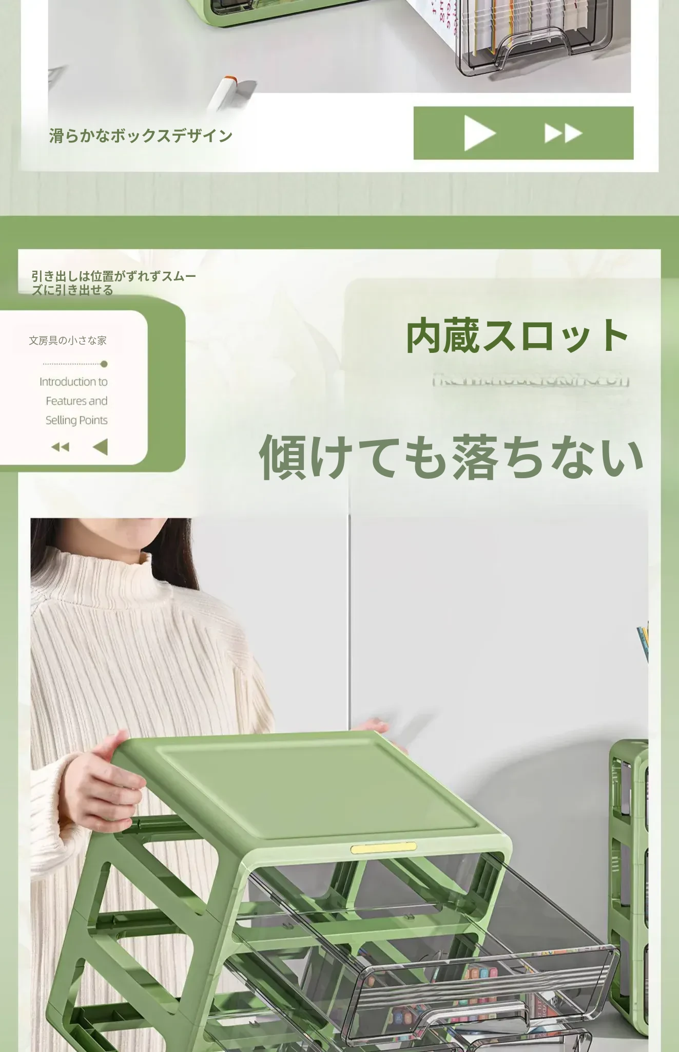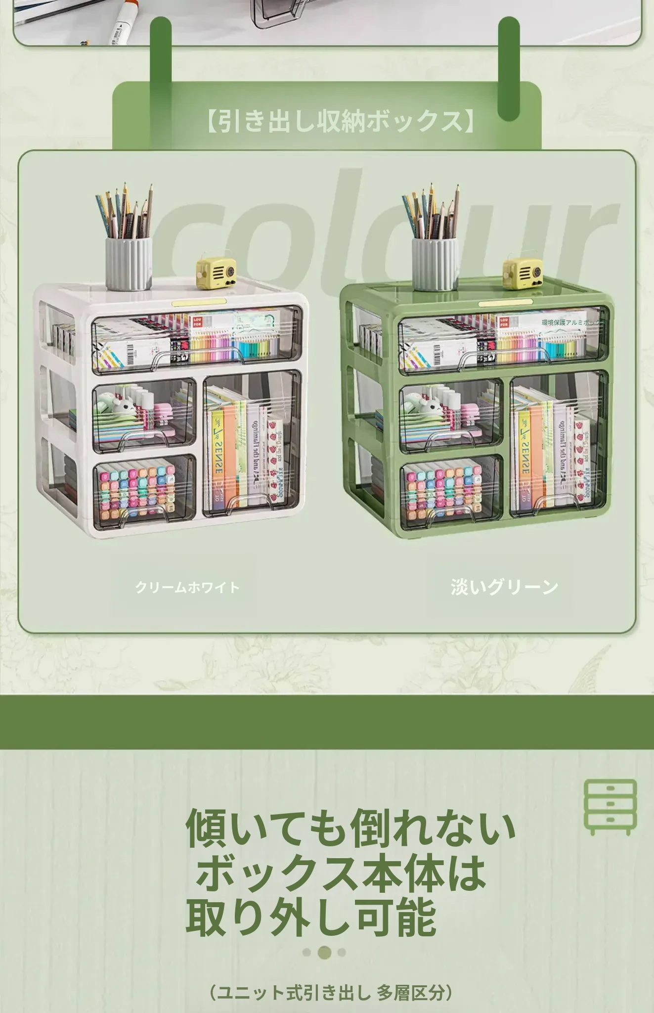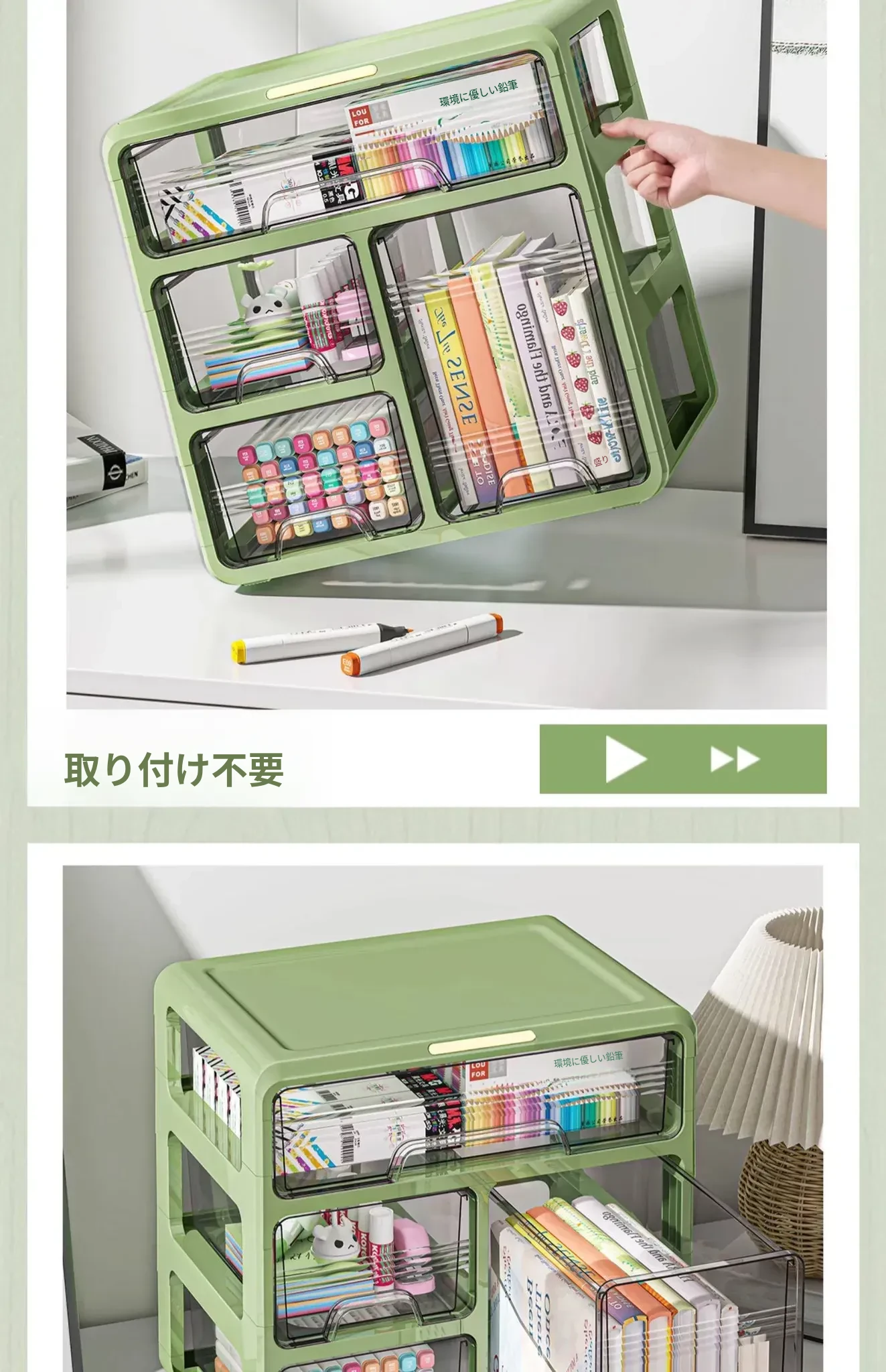 ⭐【メイン画像同タイプ】アップグレード三層タイプ-ライトグリーン【取り付け不要、引き出しがスムーズ】