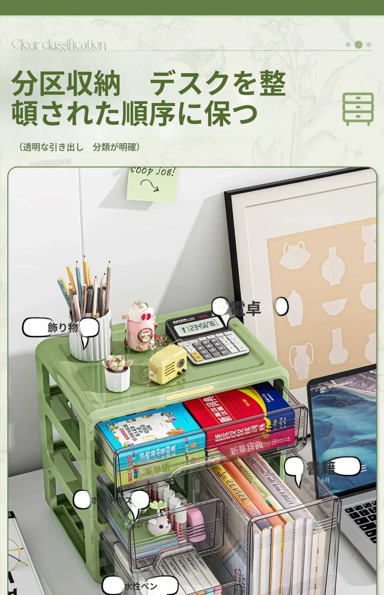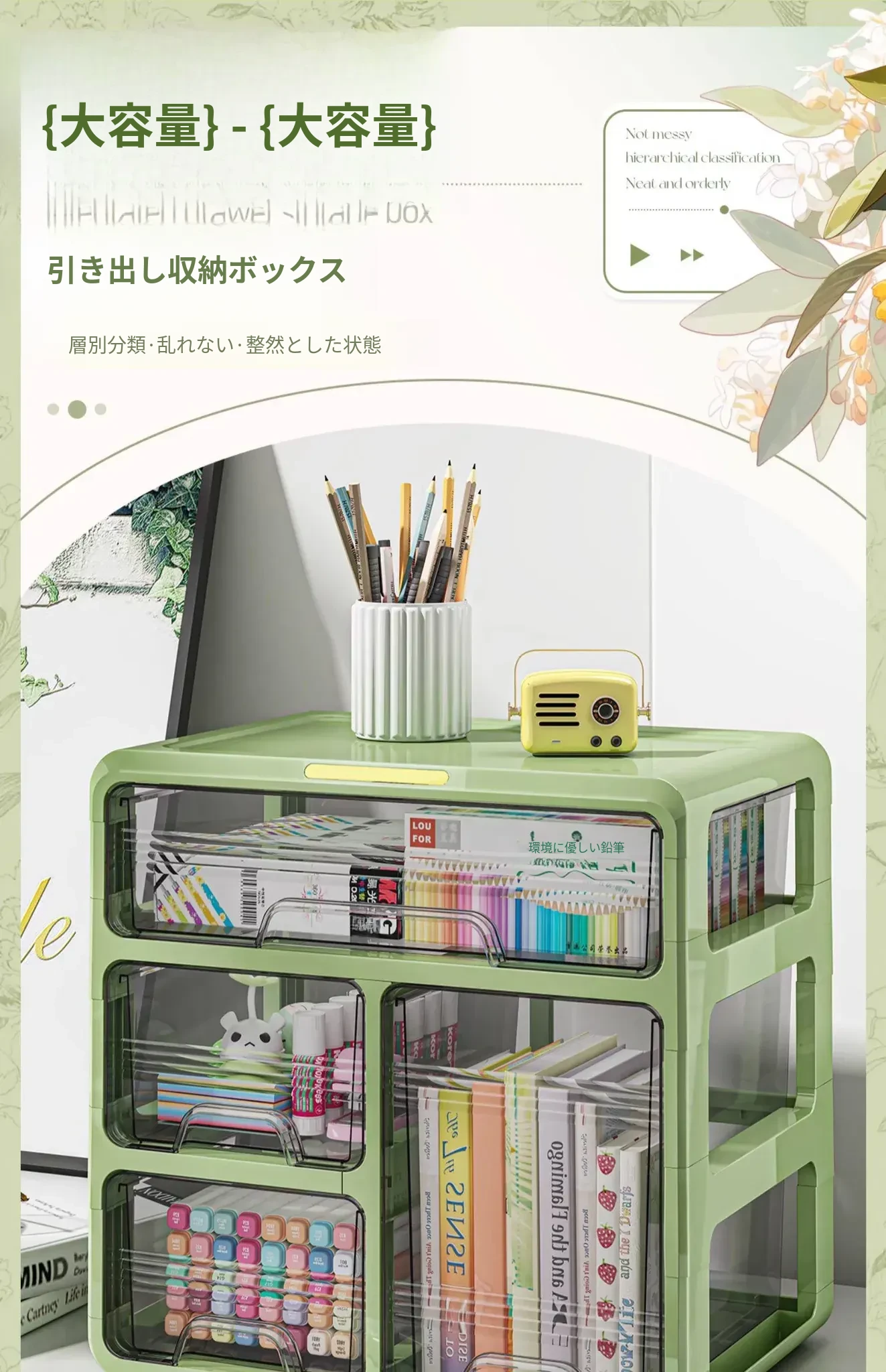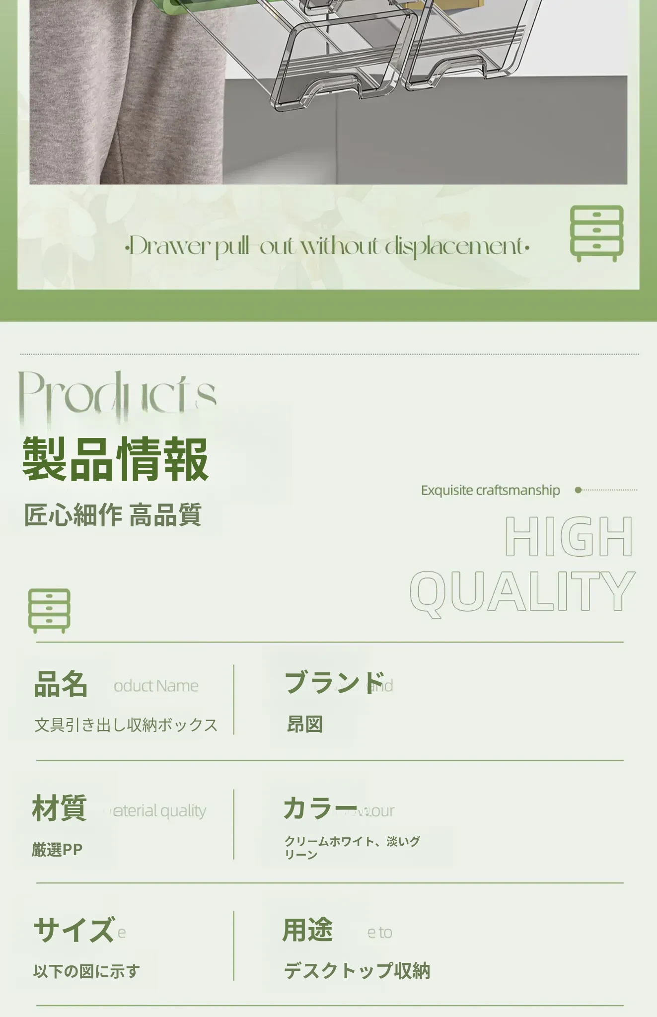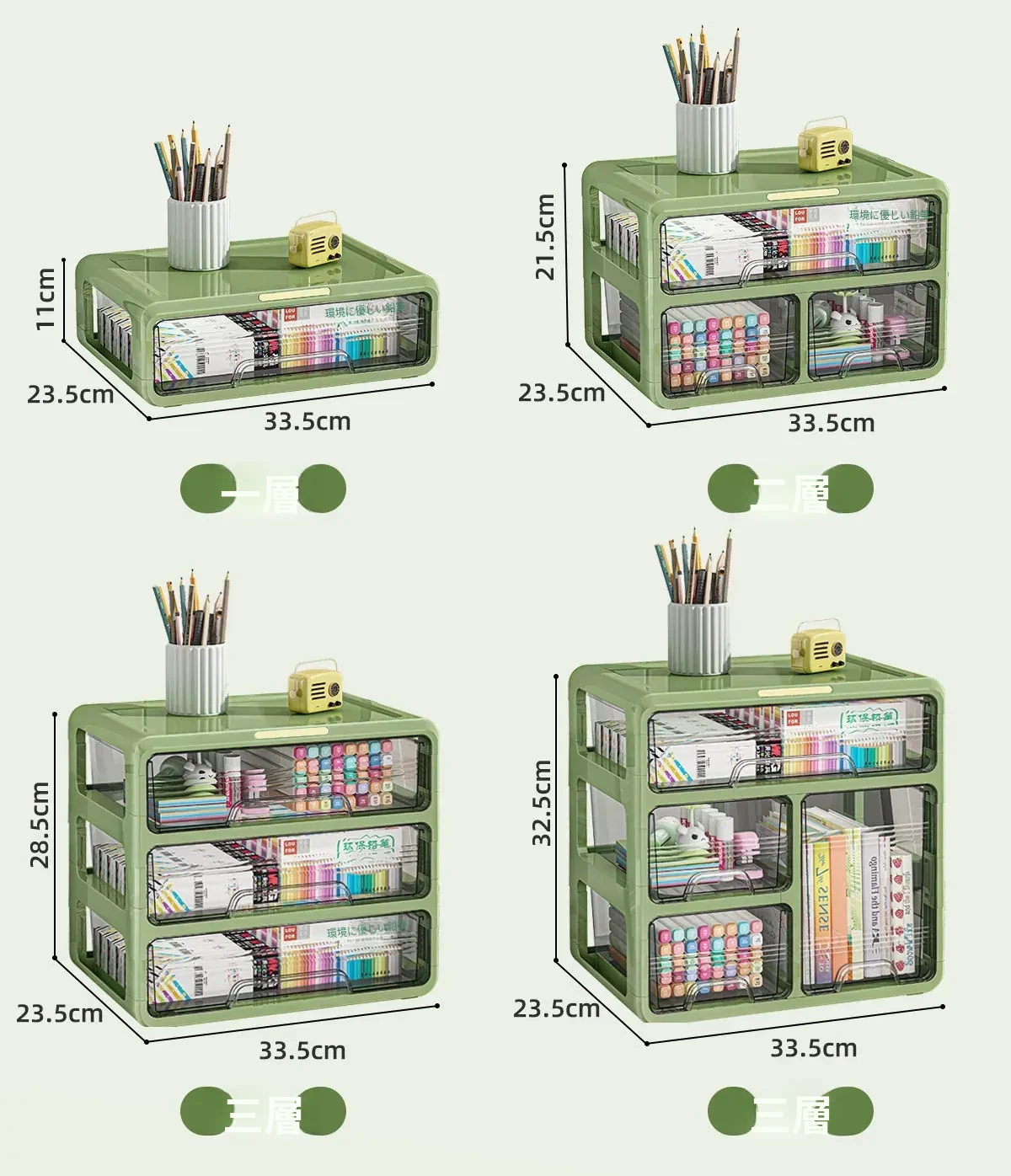 ⭐【メイン画像同タイプ】アップグレード三層タイプ-ライトグリーン【取り付け不要、引き出しがスムーズ】