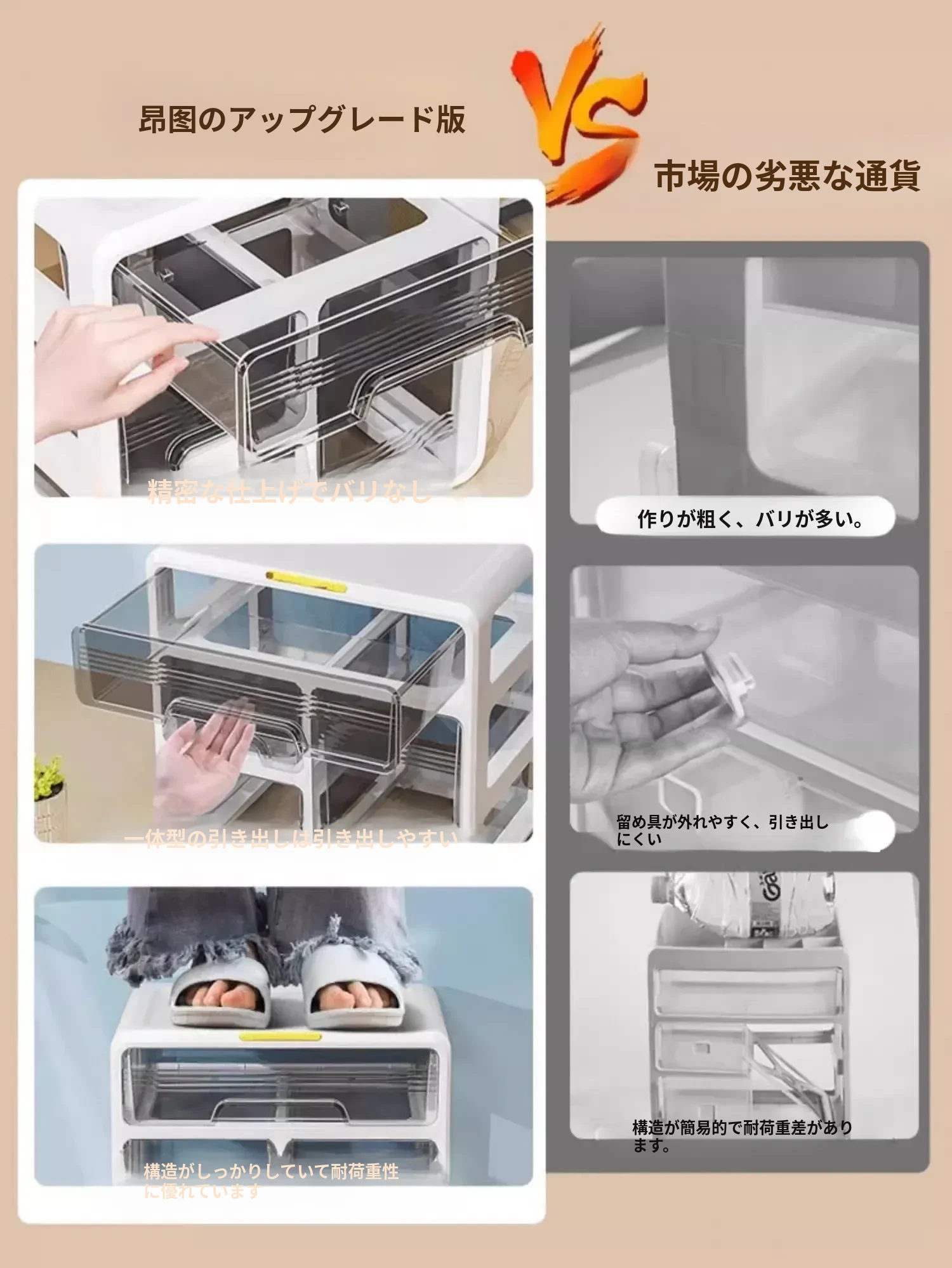 ⭐アップグレード三層タイプ-ミルクホワイト【取り付け不要、引き出しがスムーズ】